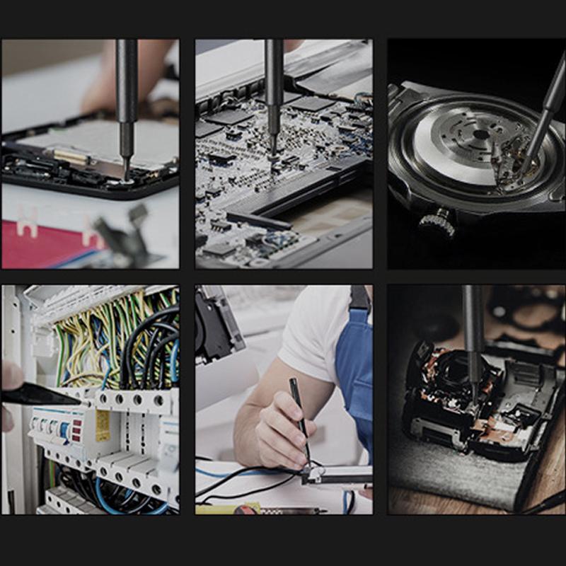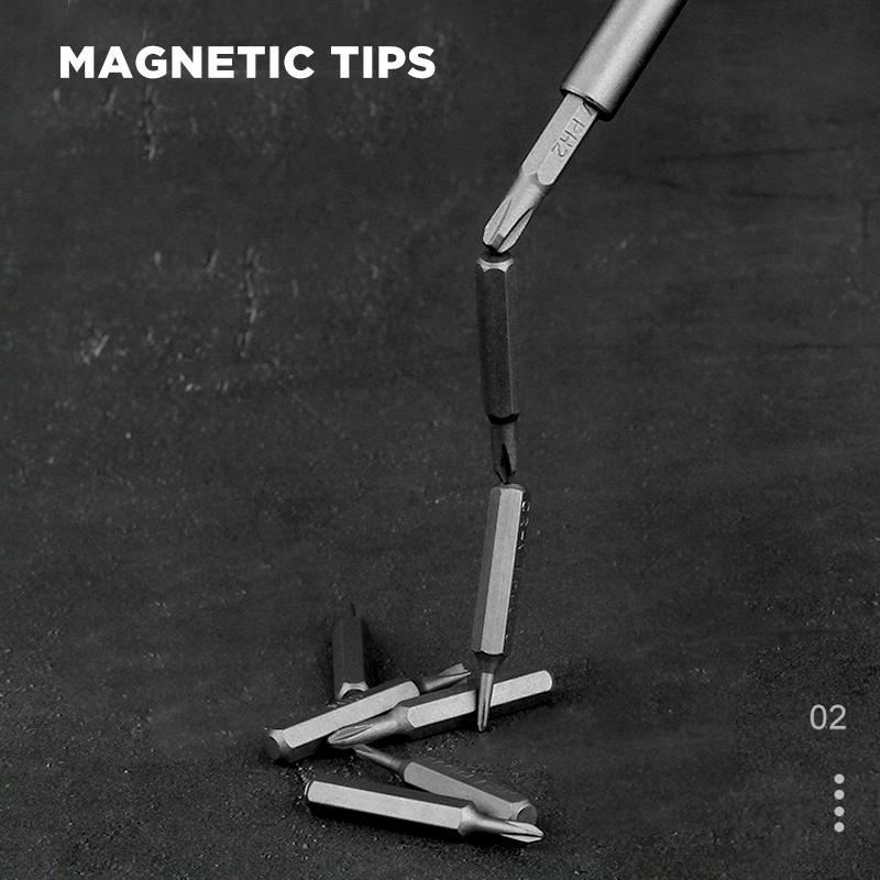 Magnetic tips facilitate hassle-free repairs. A professional-quality set for electronic screwdrivers, simple to use, with all bits neatly organized in an alloy case, making it convenient and easy to transport.