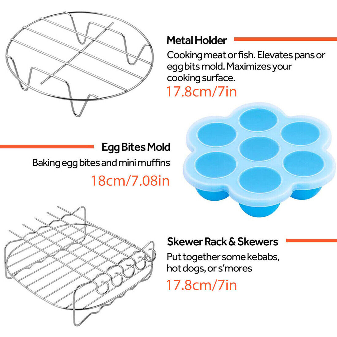 [Universal Air Fryer Accessories] We provide two different sizes of accessories; the 7-inch version is suitable for air fryers with a diameter over 20 cm, while the 8-inch version fits air fryers larger than 22 cm in diameter.
