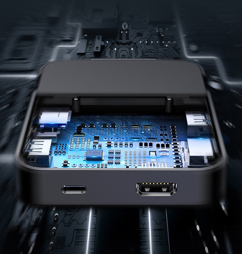 This adaptable seven-in-one docking station combines the capabilities of a charger, phone holder, and a docking station.