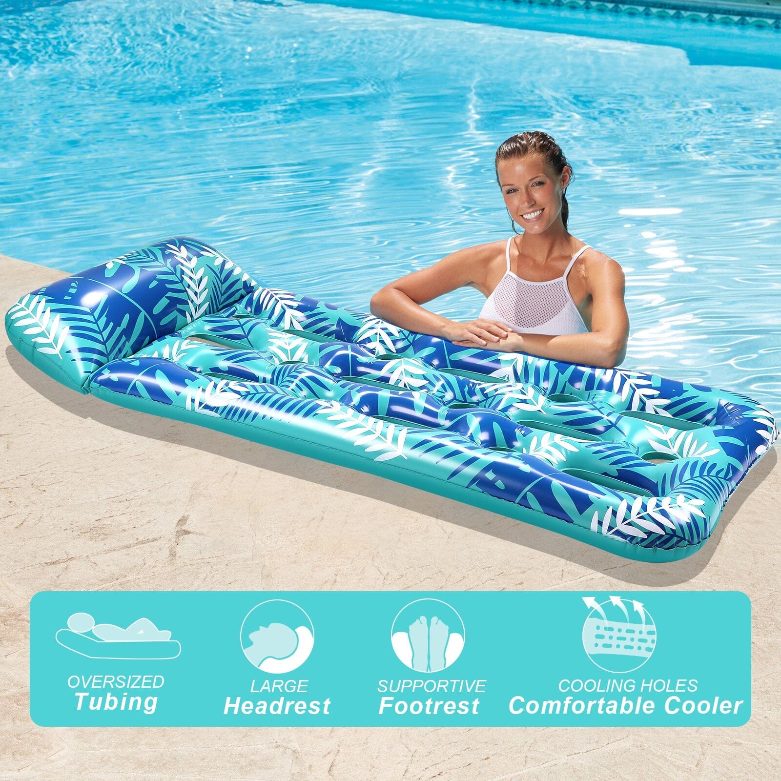 This inflatable lounge pool provides a delightful and comfortable escape as you drift in the water. It helps keep you refreshed, and its ideal design positions you perfectly for your floating pleasure. Whether in the swimming pool, by the lake, at the beach, in the ocean, or on the river, you can enjoy your summertime with family in this lounge pool.
