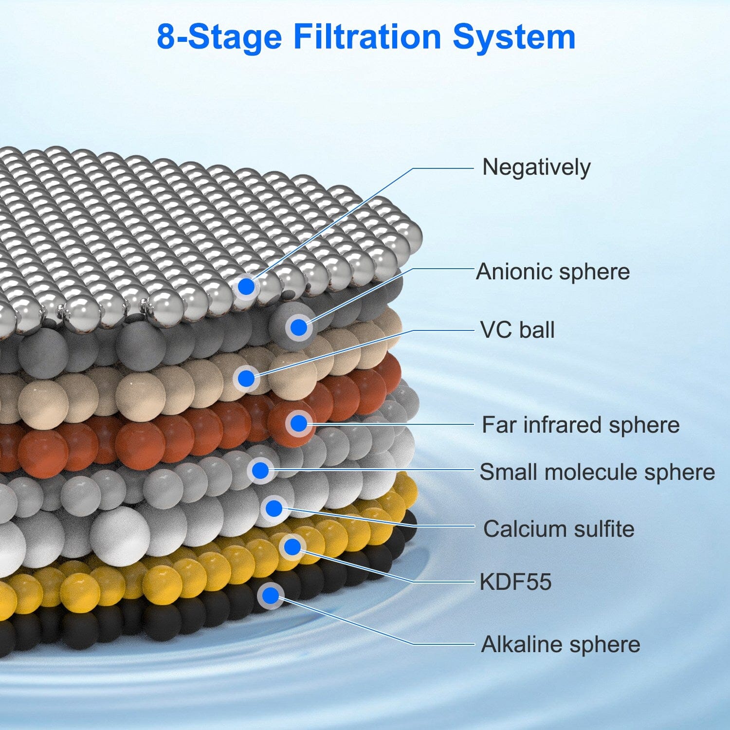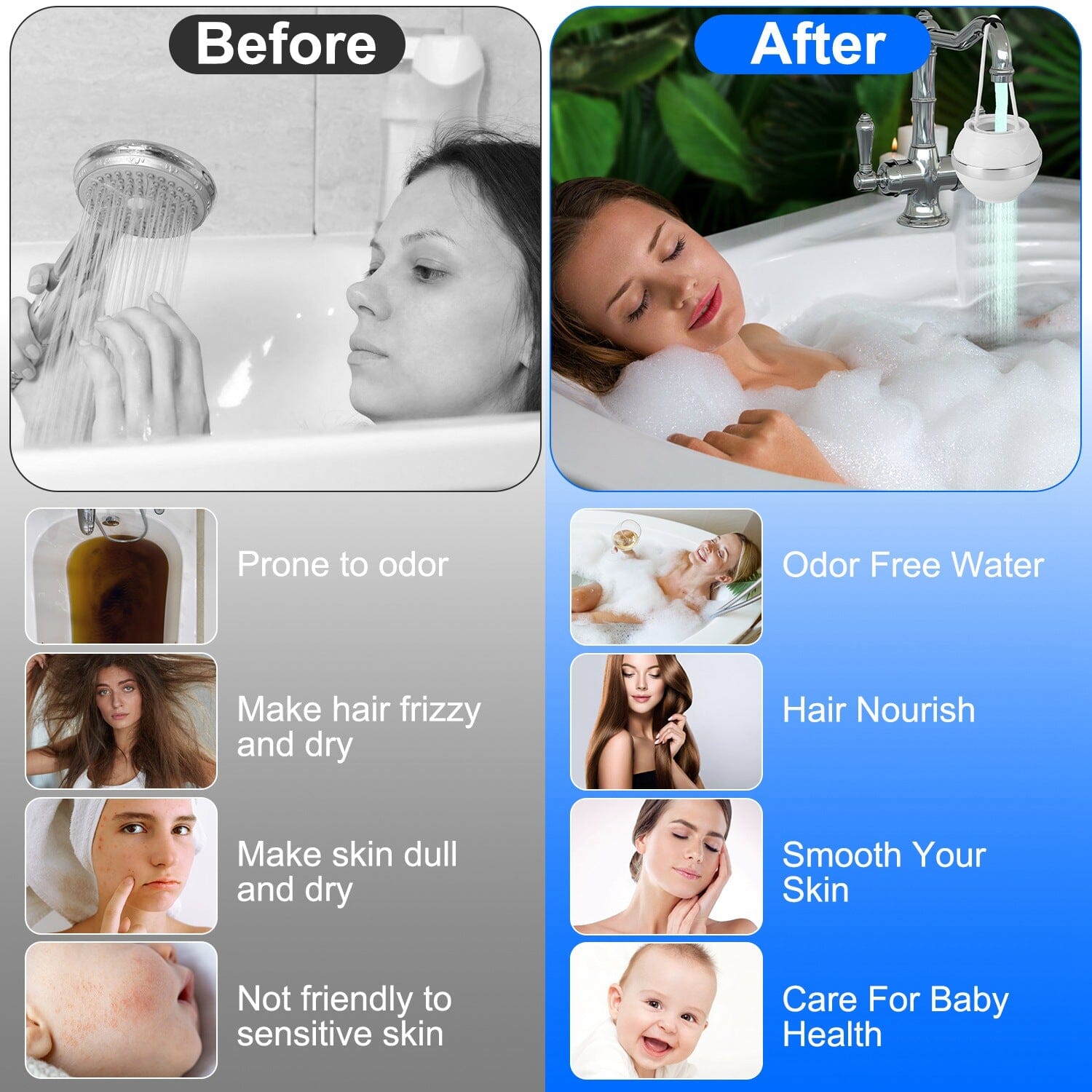 Featuring eight distinct secure filter components, our bathtub filter effectively minimizes chlorine, heavy metals, rust, calcium, water alkalinity, and a range of harmful substances, providing you with a refreshing bathing experience. In addition, this filter is enriched with VC balls, anionic spheres, and various beneficial elements to enhance each drop of filtered water with oxygen, essential minerals, and vitamins. Operating within a temperature spectrum of 0°C/32°F to 60°C/140°F, our bathtub water filter boasts a maximum filtration capability of 2500 liters, along with a recommended replacement interval of around 6 months, making it suitable for consistent use throughout the year. It is particularly advantageous for those experiencing eczema or dry, itchy skin.