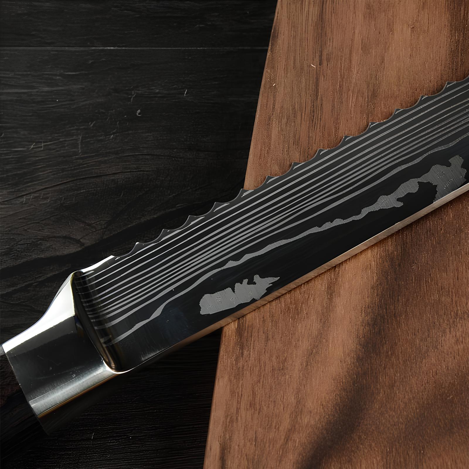 Discover our 19 cm Skorter featuring serrated blades, an essential tool for your kitchen. Meticulously crafted from high-quality stainless steel with a high carbon content, this Skorter delivers a clean cut that is ideal for a variety of breads, from crunchy baguettes to soft country loaves.