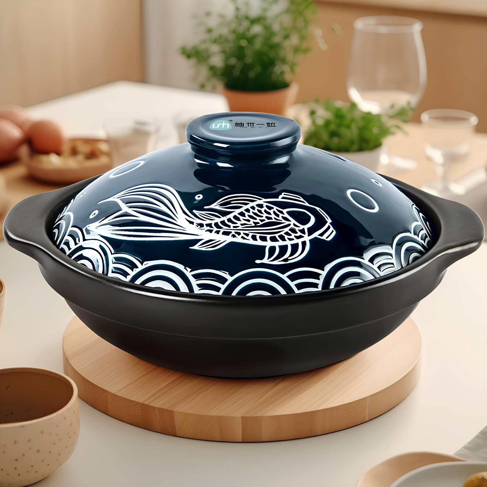 Discover our stunning Skorter in black ceramic, topped with a lid in rich blue hues adorned with a lovely fish that will captivate you!