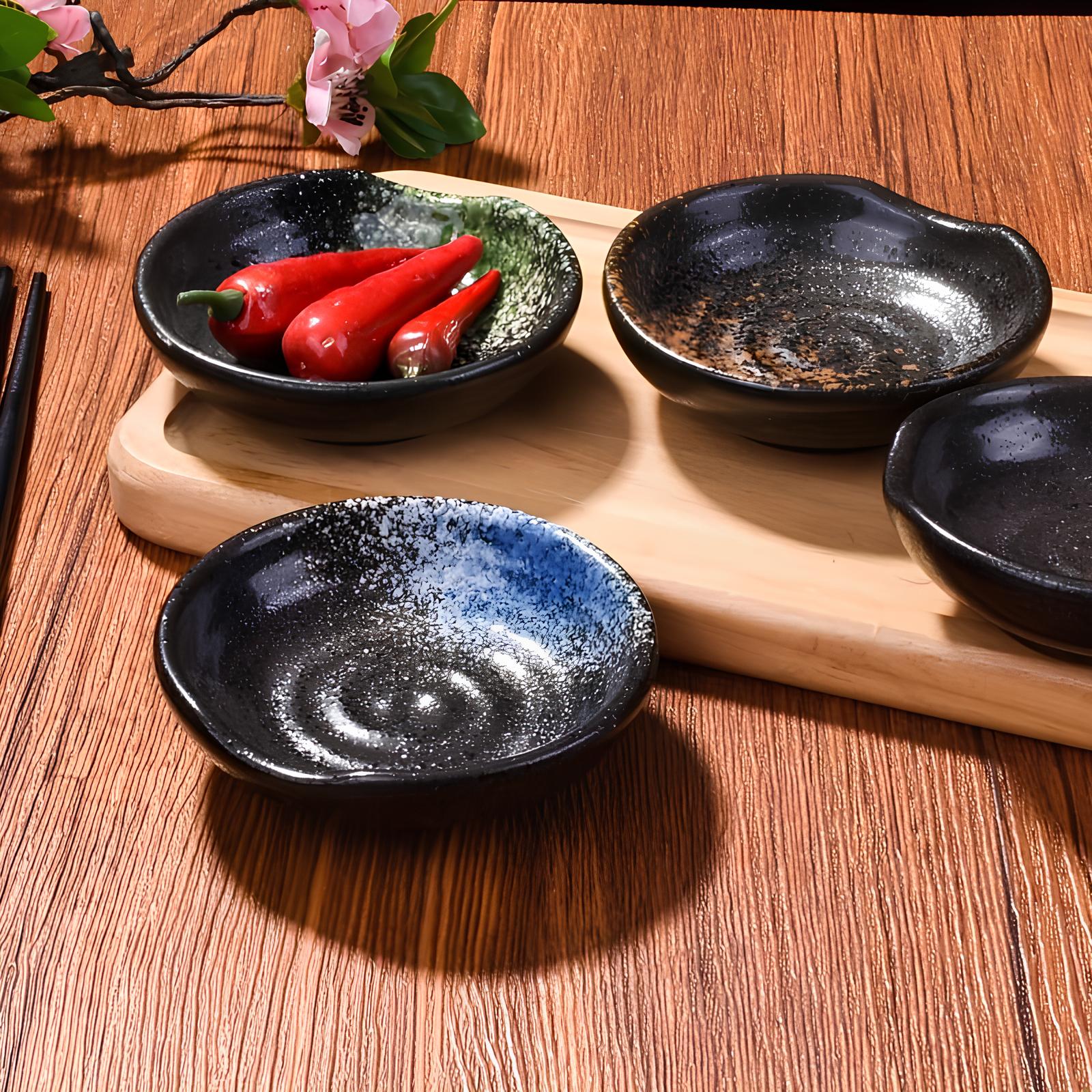 Discover our set of four Skorter ceramic sauce dishes, designed to provide durability and enhance your table for any occasion.