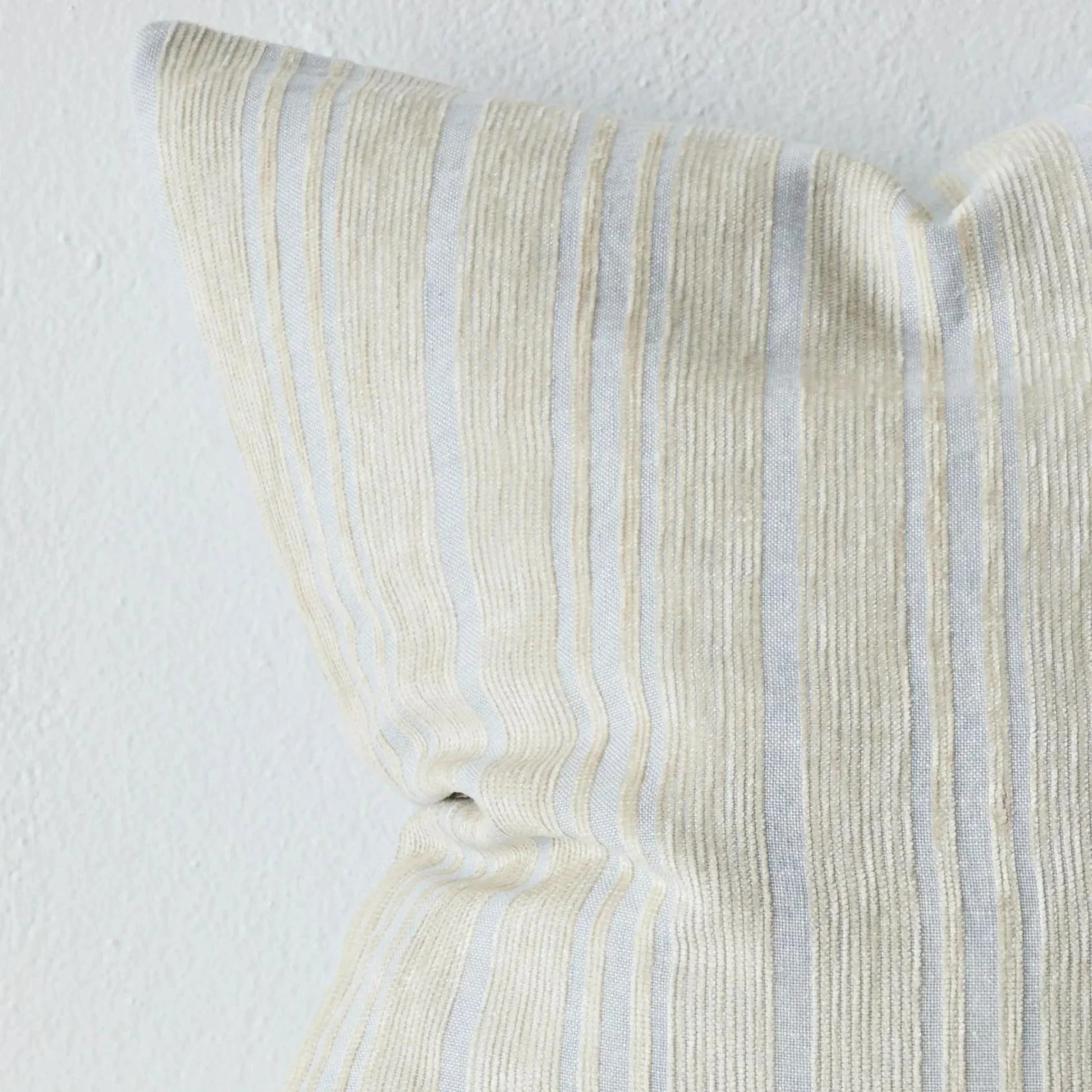 Adriana is fashioned from a detailed blend of shiny chenille and fresh natural fibers, offering a refined look and feel. The palette features modern, essential, and trendy tones. Glacier combines a gentle sky blue with a bold sandy stripe. With its enduring and chic essence, Adriana is perfect for use on its own or in combination with different patterns or solid textiles. This item serves as a versatile and beautiful addition to any home decor.