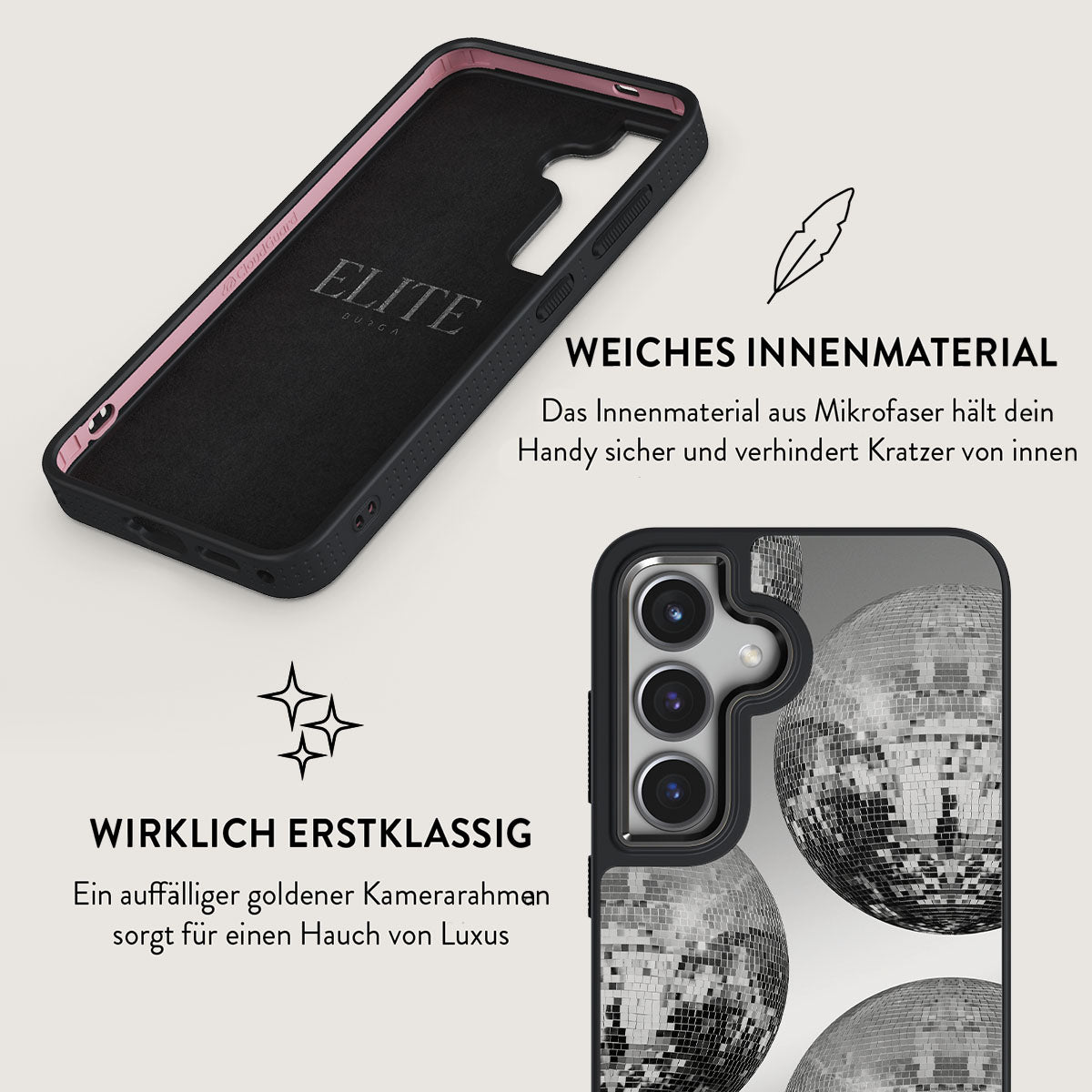 This design showcases: Dazzling disco balls.