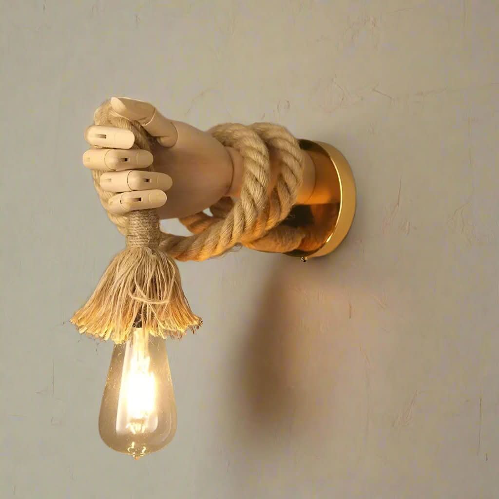 This elegantly designed wall lamp boasts a unique hemp rope detail coupled with a robust wooden base, infusing any room with warmth and sophistication. It is ideal for creating a cozy atmosphere and elevating the appeal of any environment. The vintage design seamlessly enhances both traditional and modern decor.