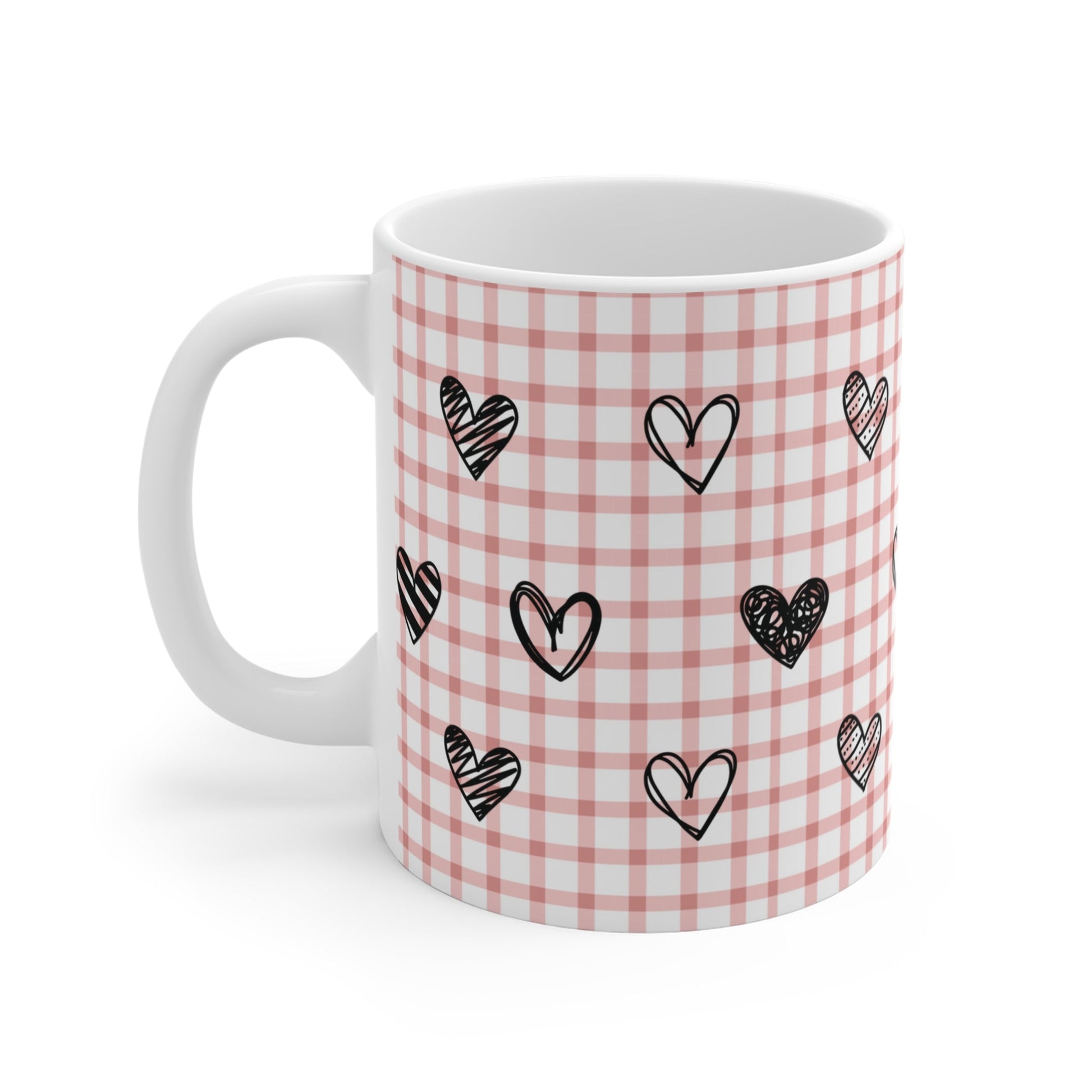 Skorter and Hearts Pink Mug - an ideal partner for your morning coffee, tea, or hot chocolate. Made from high-quality, resilient ceramic, this classic white mug is built to endure everyday usage and is destined to become your favorite vessel for all your beloved hot drinks. With its elegant and modern design, this mug is suitable for both home and office settings.