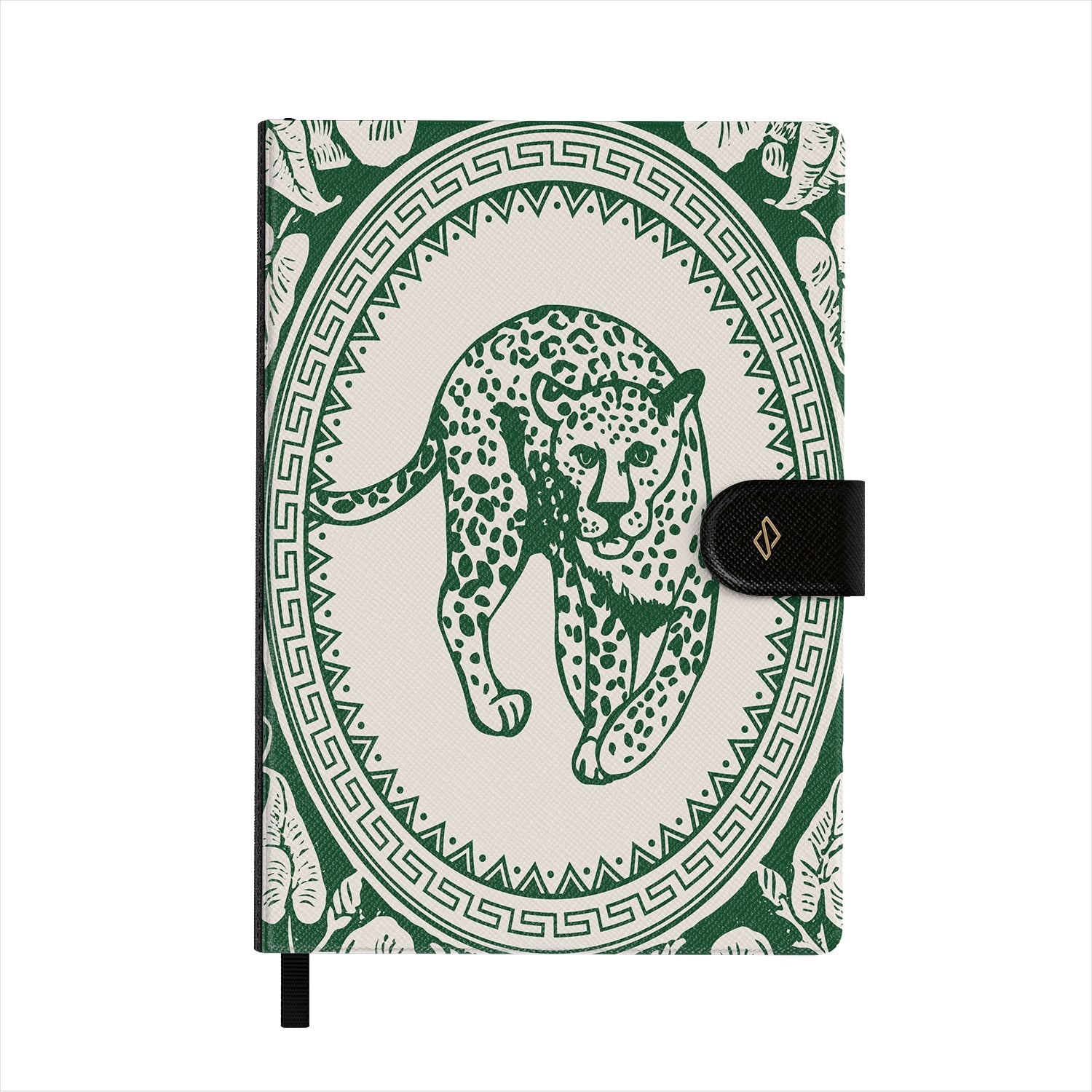 Showcasing detailed Skorter designs on a cover crafted from vegan leather – complete with a chic black bookmark.