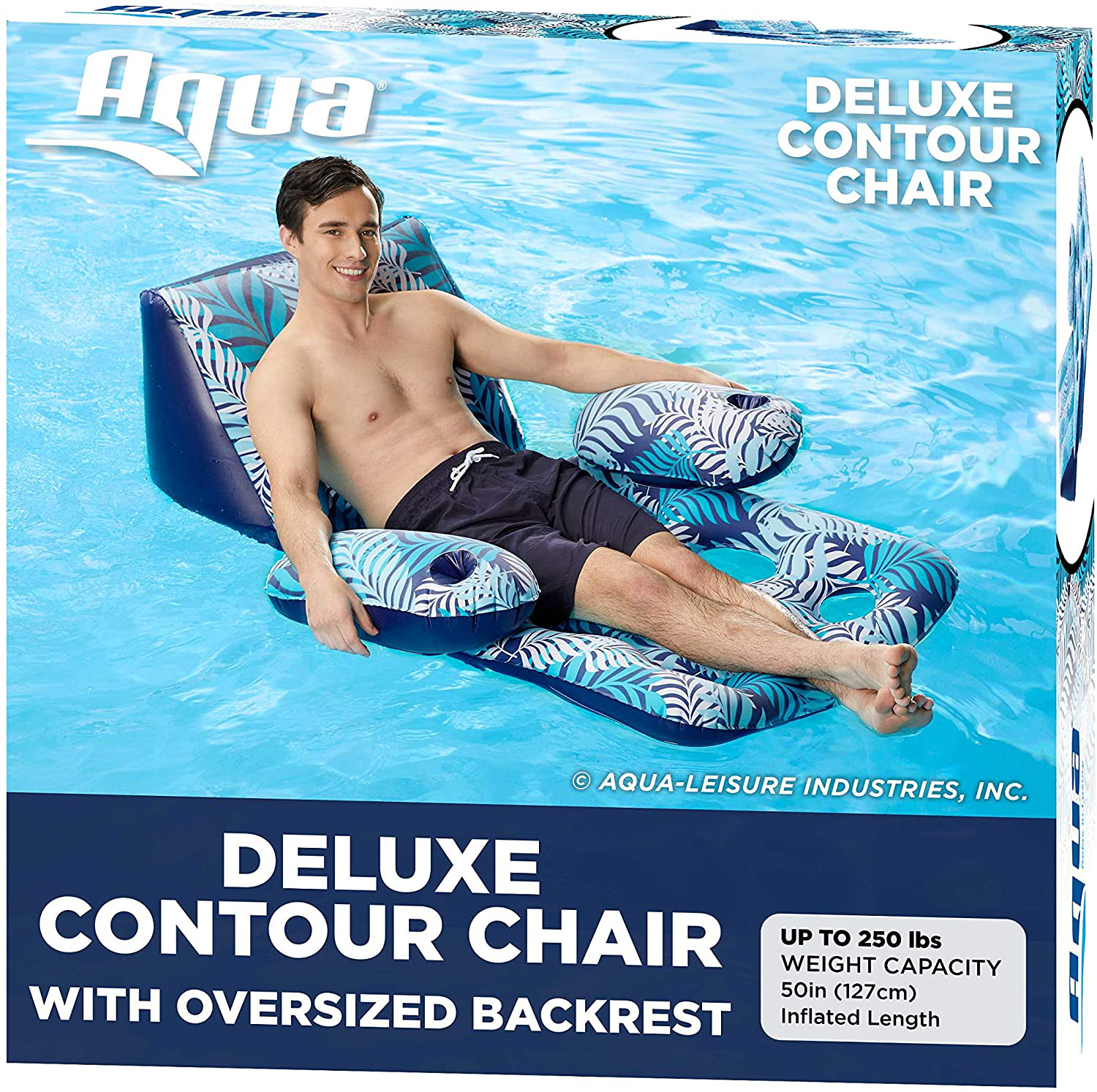 AQUA Premium Contour Pool Lounge, Opulent Fabric, Adult-Sized Pool Float, Lake Floating Chair, Durable, Blue/White Fern