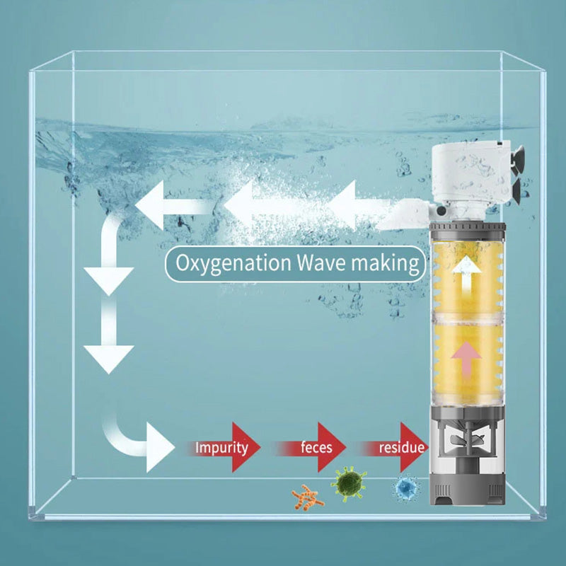 VARIABLE OXYGENATION AND WAVE CREATION: The filter improves water circulation and oxygen levels with adjustable airflow and wave-making features. Customize the wave size and airflow to meet the specific requirements of the tank, fostering a lively and healthy aquatic environment.