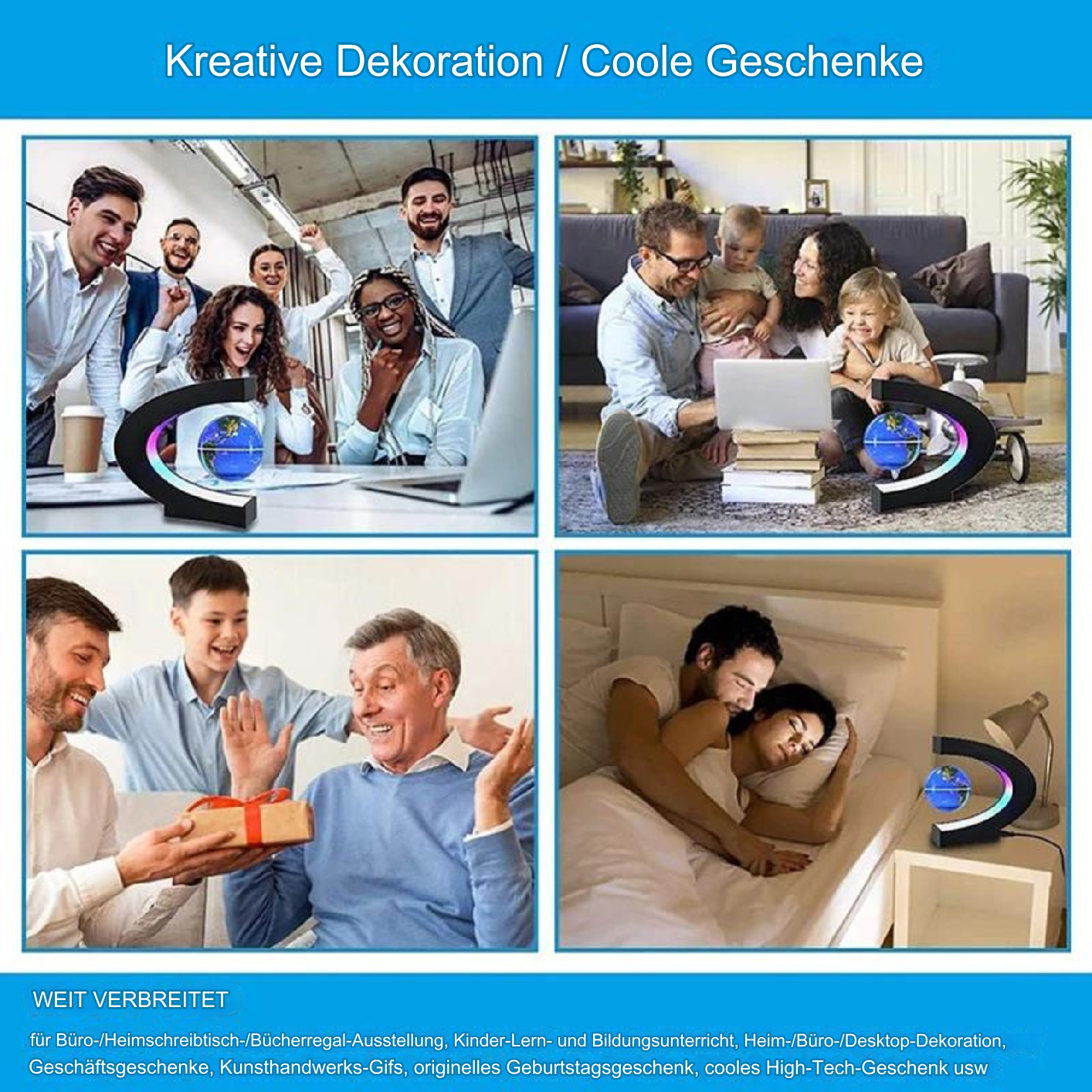 This exceptional lamp combines a beautiful depiction of our planet with a modern design, featuring a globe that captivatingly hovers and rotates within a C-shaped base, enhanced by LED lighting for a contemporary look. It seamlessly integrates into any space, serving as a stunning focal point as well as a source of knowledge that sparks curiosity and stimulates discussions. Bring this enchanting piece into your setting to create an atmosphere of modern adventure and wonder.