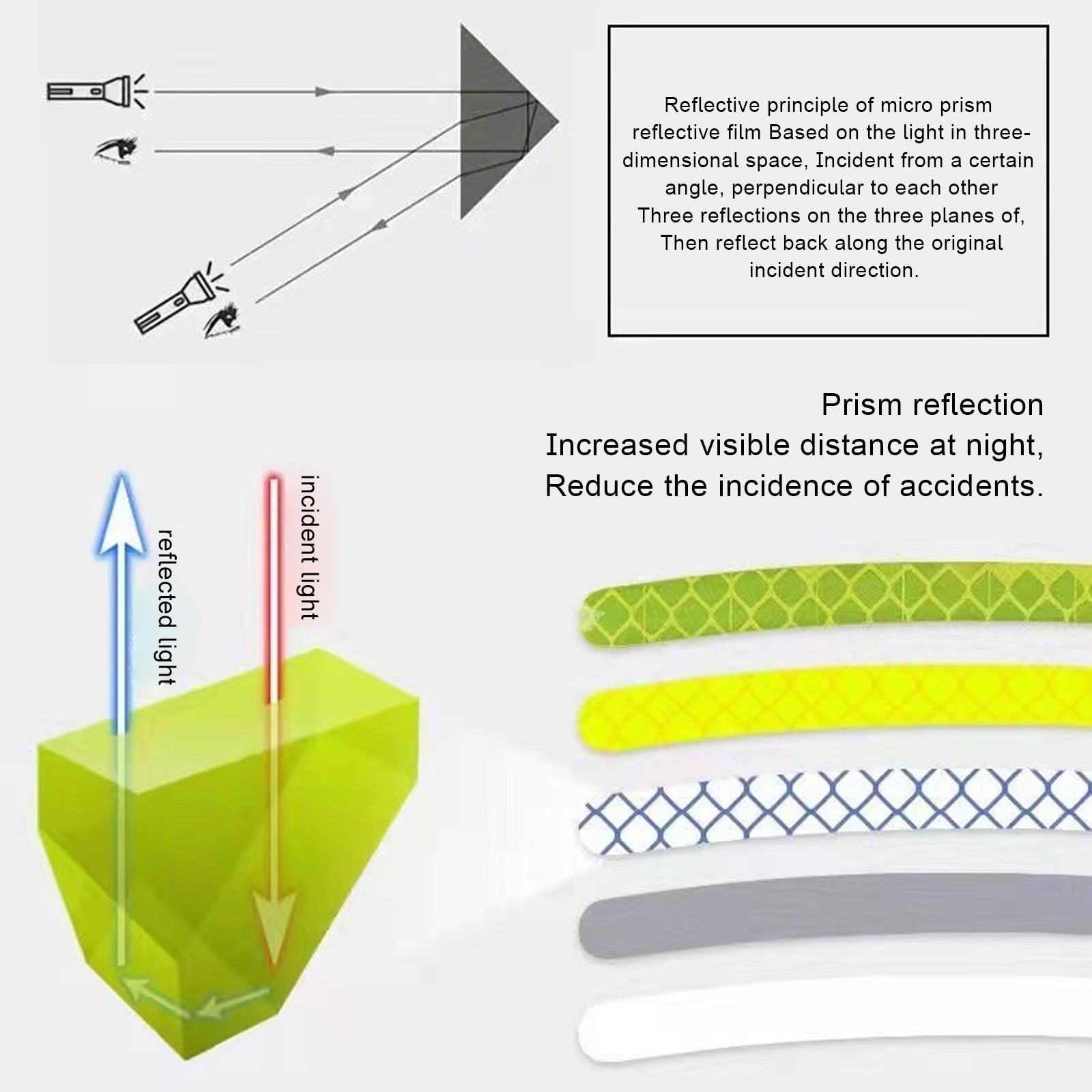 2. Superior reflective qualities: Crafted with a specialized anti-ultraviolet solvent coating, these stickers provide an exceptional reflective effect that effectively bounces back all light sources, encompassing headlights and sunlight. They are waterproof, resilient against breakage or damage, resistant to fading, and possess a long service life – tough and dependable.