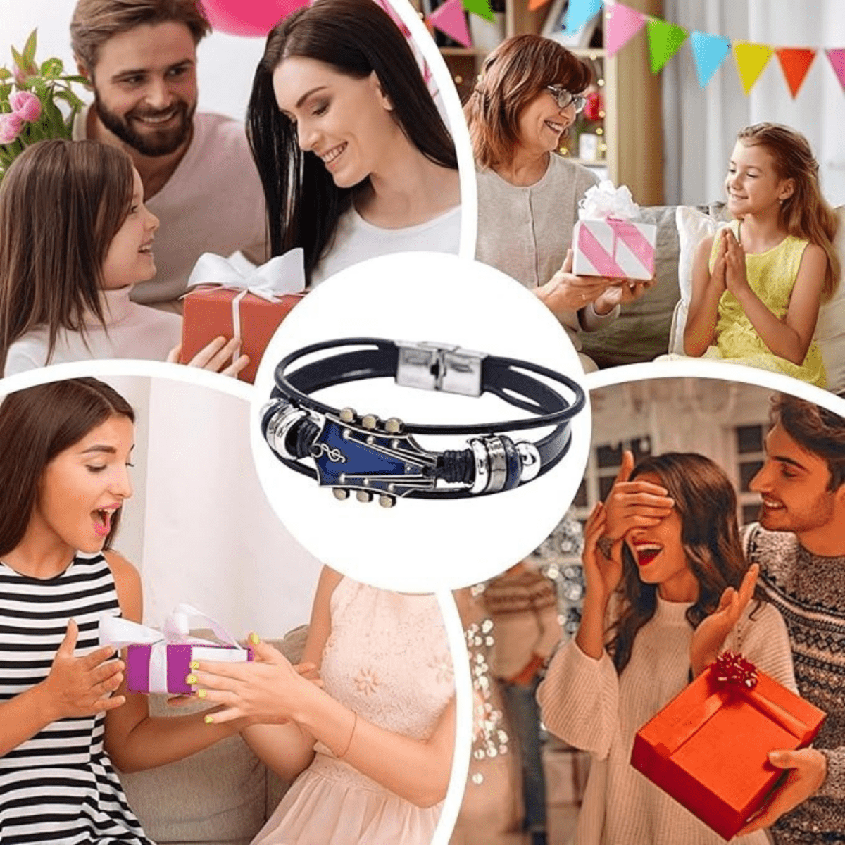 The AXECHORD leather bracelet is crafted for music lovers who want to showcase their passion in a subtle yet stylish way. Featuring vintage-inspired guitar details, it adds a personal touch to both casual and formal outfits.