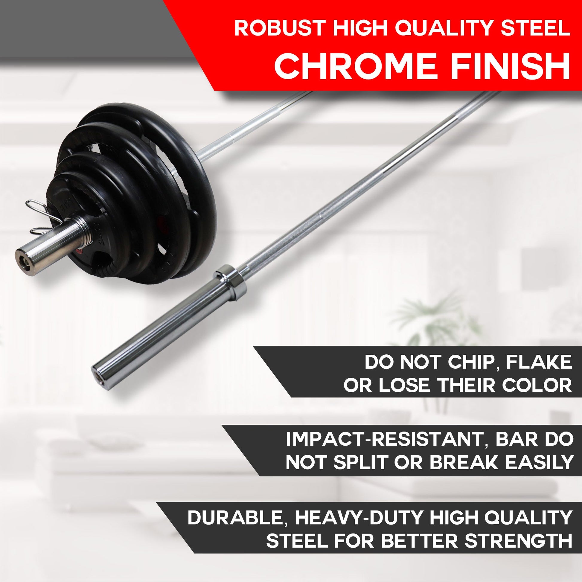Manufactured from high-quality solid cold rolled steel and featuring a chrome coating, the Skorter Barbell Bar is designed for durability and outstanding performance.