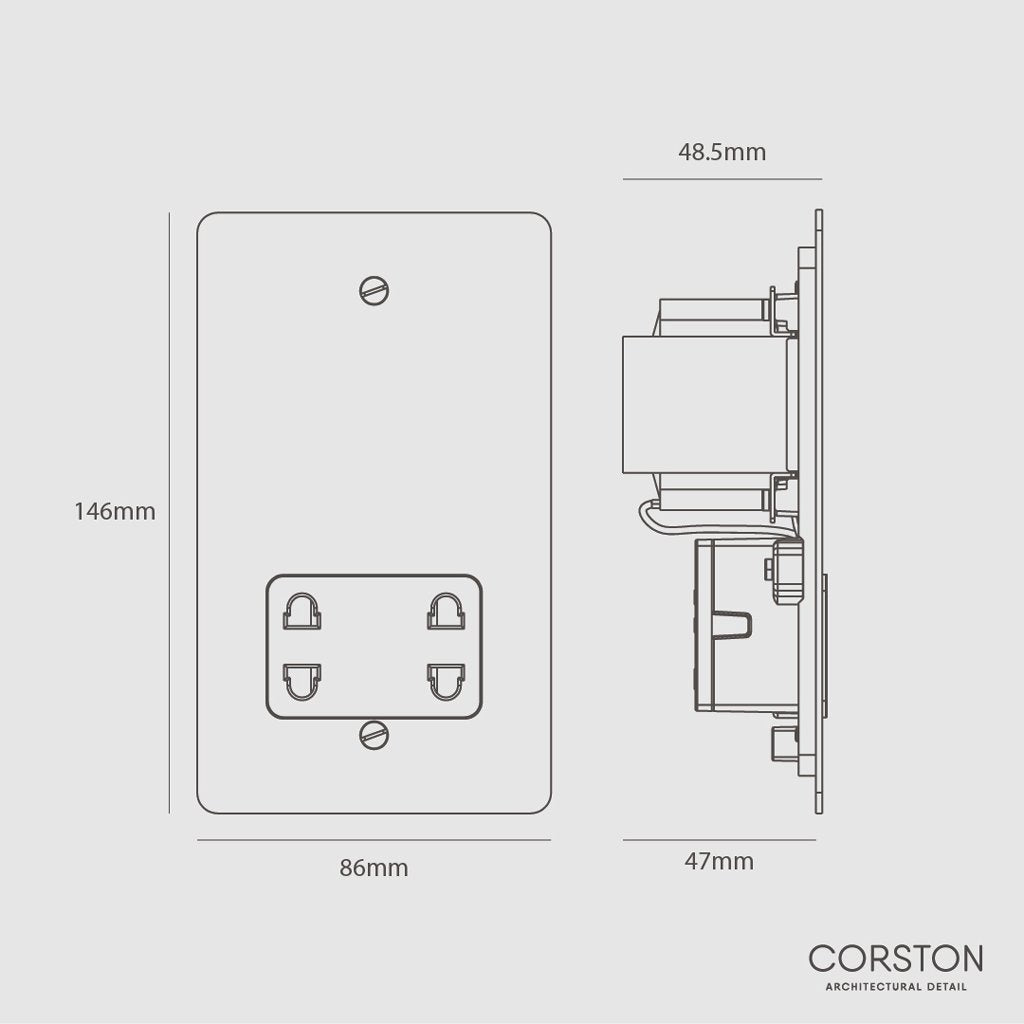 The outlet's surround is made of a low-gloss plastic that comes in black or white, featuring a delicate textured surface.