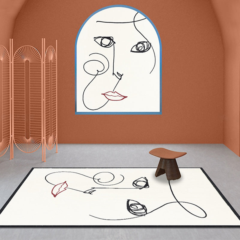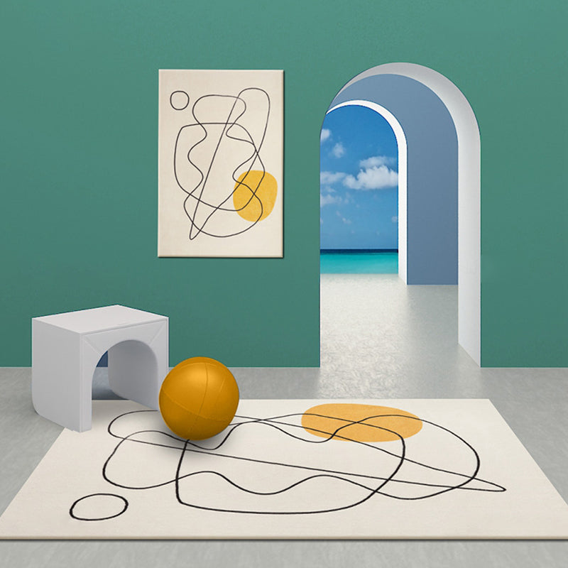 Skorter | Beige Abstract Rug Polyester Modern Rug Washable Non-Slip Pet-Friendly Area Rug for the Living Room