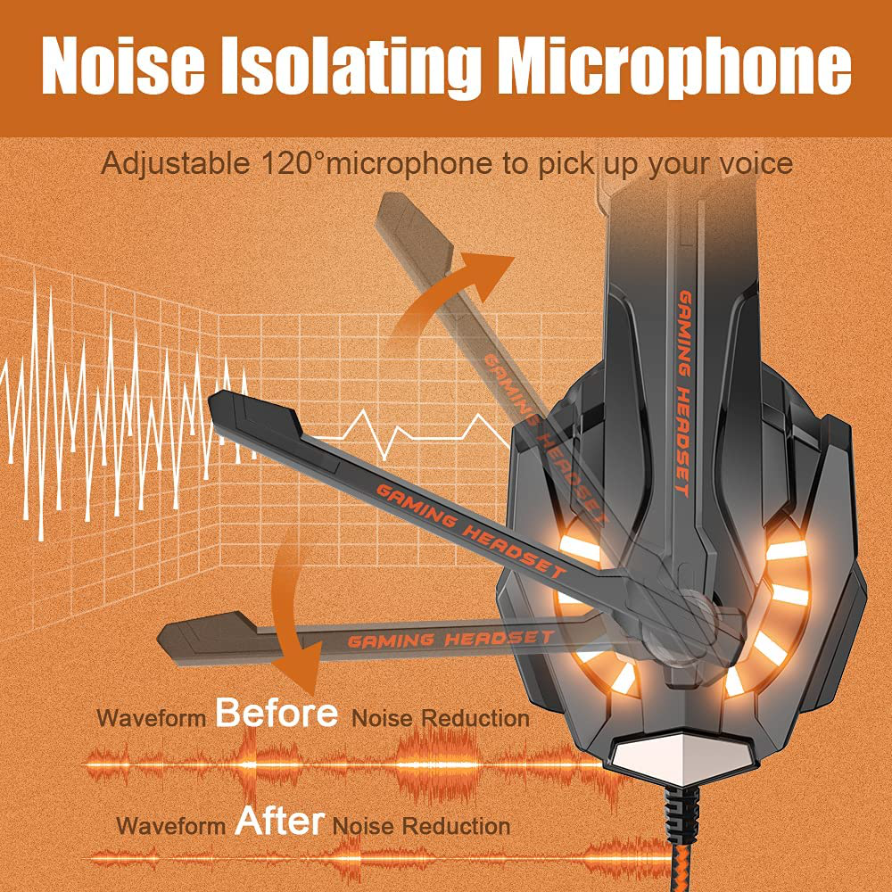 BENGOO G9000 Stereo Gaming Headset for PS4, PC, Xbox One Controller, Noise-Canceling Over-Ear Headphones with Microphone, LED Lights, Bass Surround, Soft Memory Ear Cushions (Orange)
