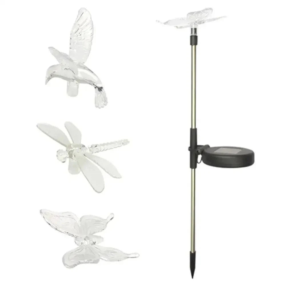 This solar-powered LED stake lights, featuring a vibrant hummingbird, butterfly and dragonfly. Automatically recharges during the day and illuminates your evenings - eco-friendly, weatherproof and easy to install.