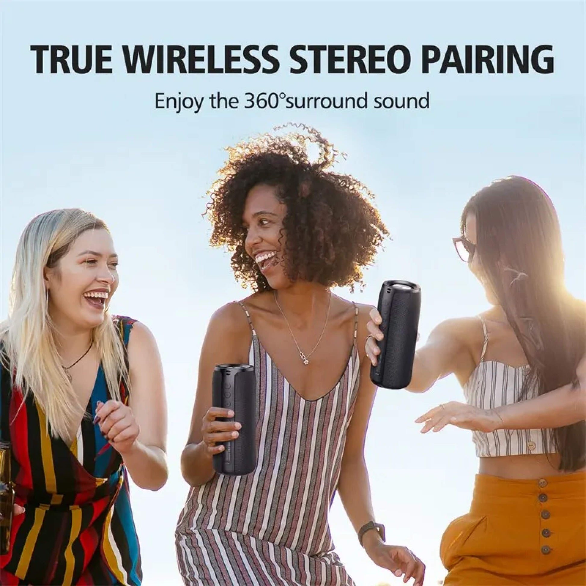 Genuine 360° Stereo Sound: Full Bass Stereo - Bluetooth speakers create a surround sound experience with rich bass, mids, and highs. There’s no distortion at full volume, mimicking the atmosphere of a live concert.