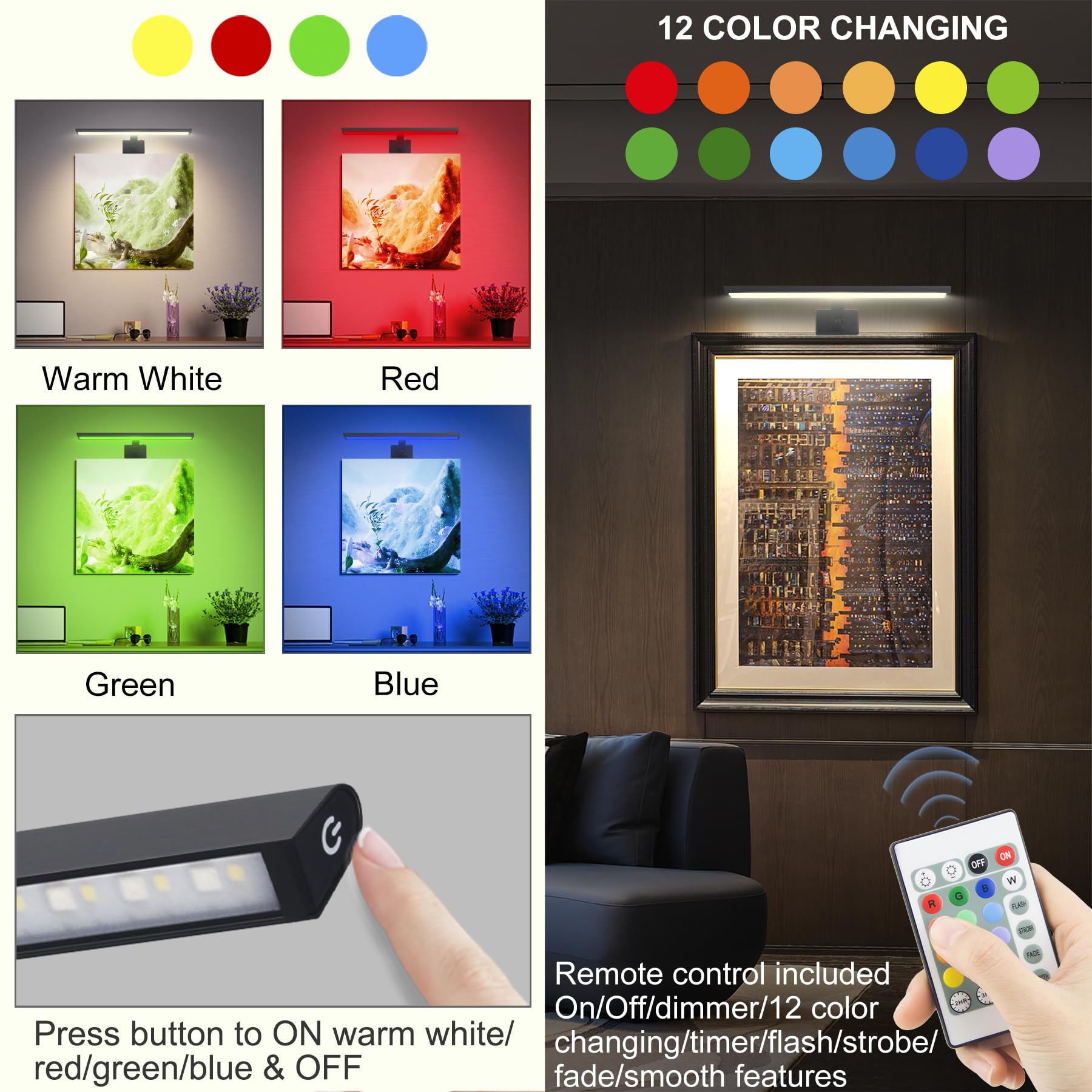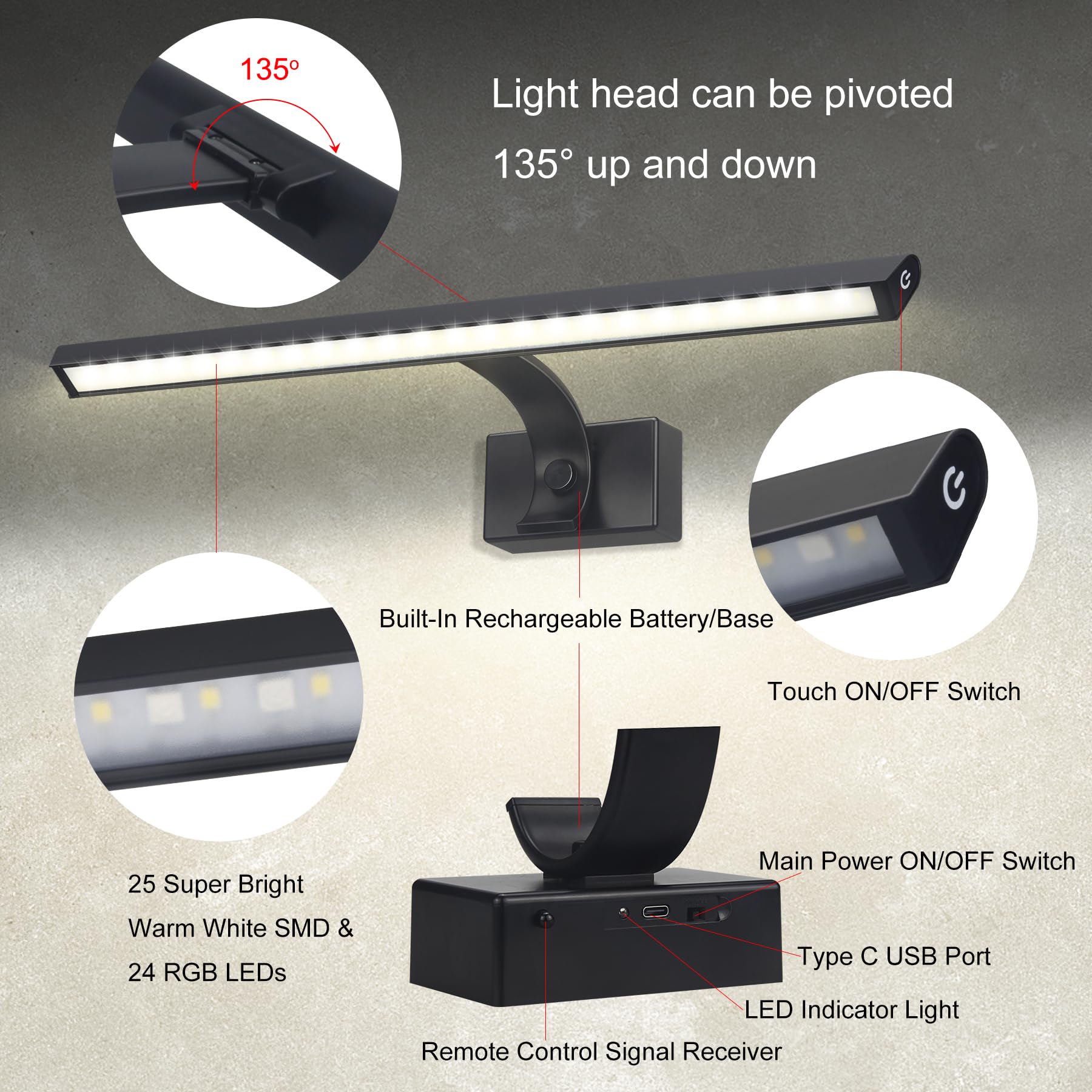 Skorter | Bigmonat 16" Wireless LED Picture Lighting, Remote Control, USB Rechargeable, Dimmable, Color Changeable