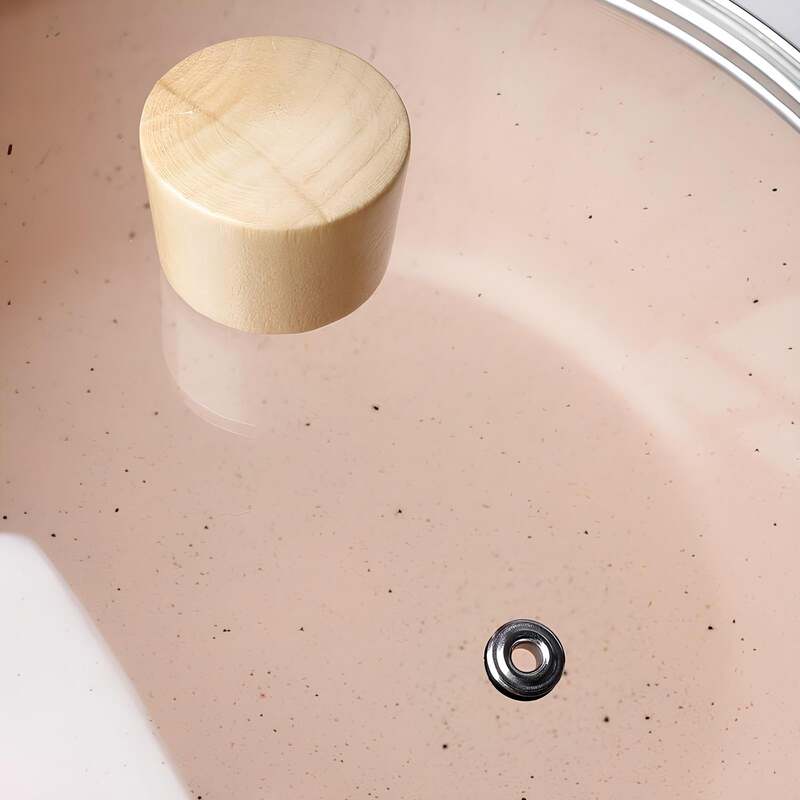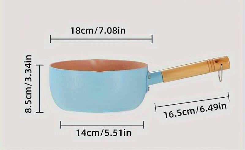 The handy pouring spout and ergonomic wooden handle ensure easy handling.