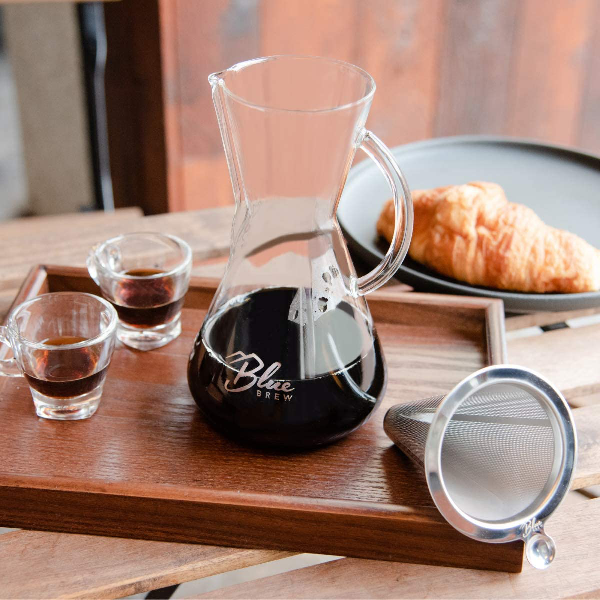 Blue Brew BB1011 Pour Over Brewer - 15oz Coffee Maker Carafe with Built-in Filter