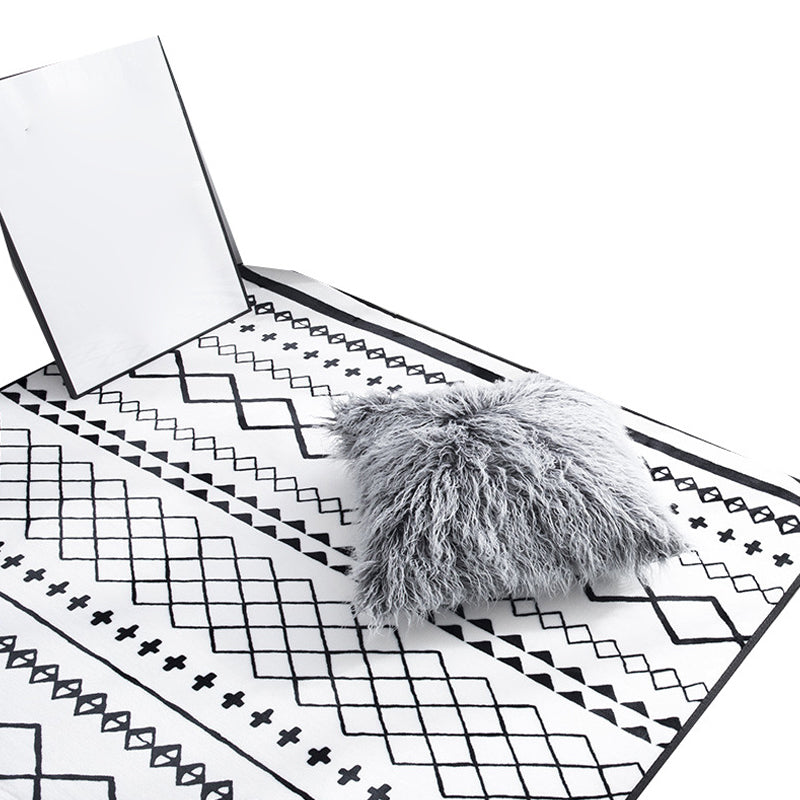 Skorter | Black Living Room Rug Nordic Geometric Print Area Rug Polypropylene Non-Slip Pet Friendly Easy Care Rug