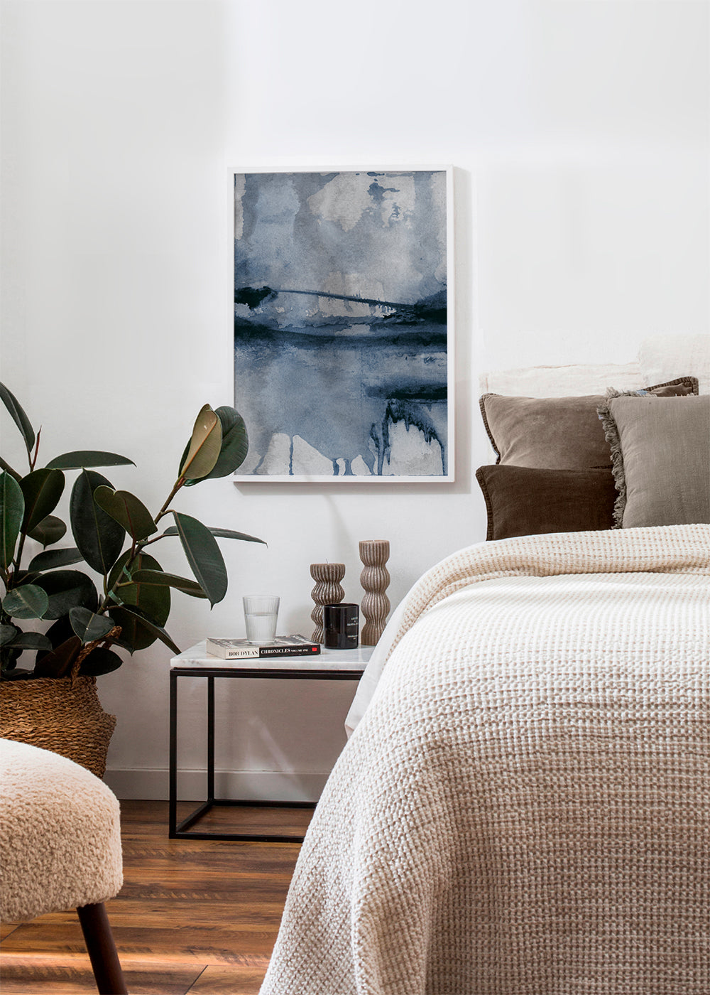 An item from our selection of geometric wall art and prints, offering a distinct version of 1x, featuring multiple shades of blue, making it perfect for vertical presentation. This artwork, characterized by its abstract forms, is excellent for complementing other abstract art pieces and geometric prints. The intricate details are truly striking.