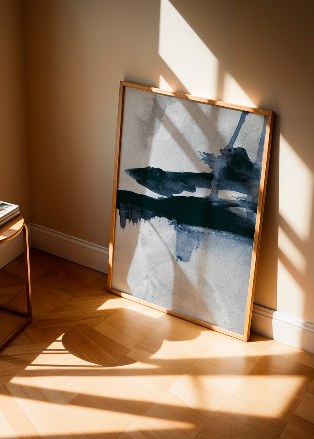 This is a print from our geometric wall art collection, created by 1x, showcasing different tones of blue in a vertical layout. Geometric prints provide a fantastic method to elevate the atmosphere in modern and artistic environments. Incorporate art into your living space.