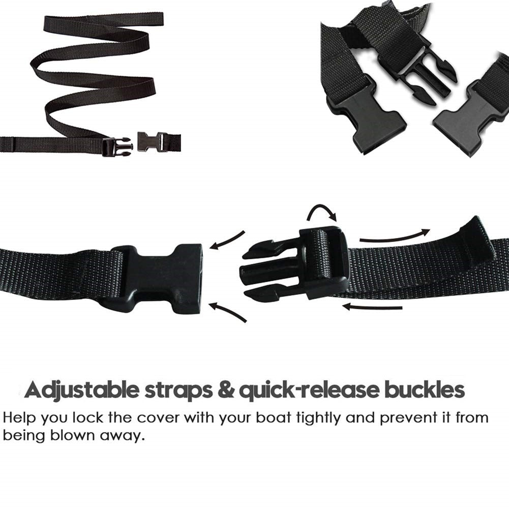 This Heavy Duty Boat Cover provides outstanding protection for your boat, ensuring it remains in excellent condition despite exposure to the elements. The 600D Oxford fabric combines exceptional durability and water resistance, while the integrated strap system and quick-release buckles simplify usage. Ideal for V-hull, tri-hull, and bass boats, this cover is a must-have for any boat owner aiming to protect their investment.