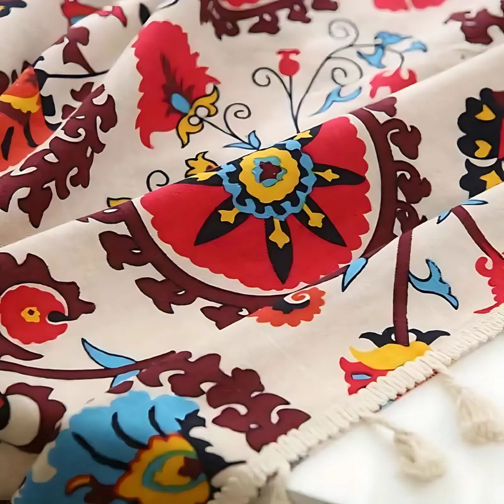 Infuse your living spaces with vibrancy and style using the Boho Color Wheel Bloom Tassel Curtain. Its colorful floral pattern serves as a dynamic focal point, complemented by the tasselled edges that provide a Bohemian touch.