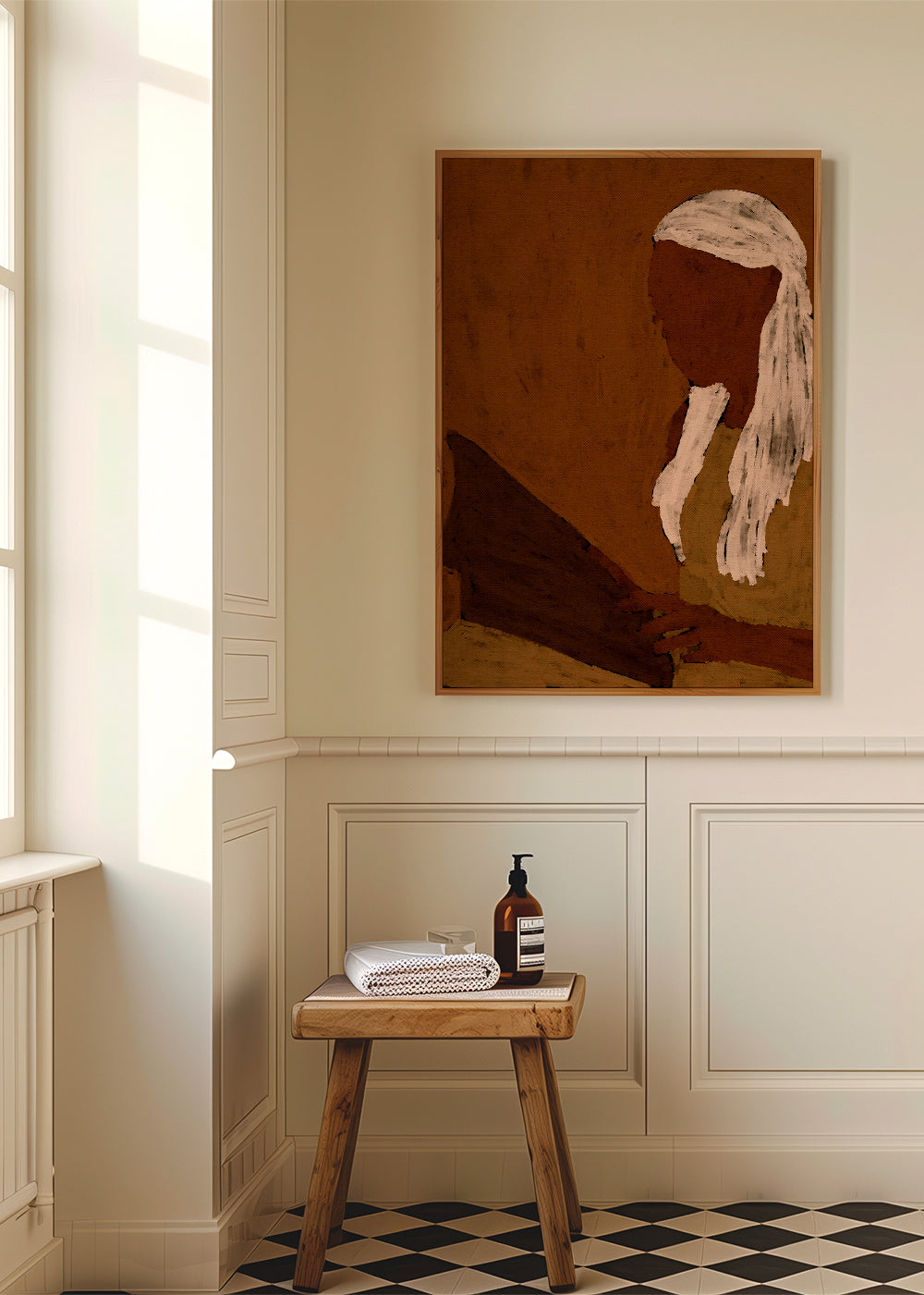 An exquisite piece from our range of girls' wall art, created by Shatha Dafai, showcasing inviting brown hues and a vertical layout. Illustrated prints add a distinctive flair to your home. Allow this artwork to invigorate your environment.