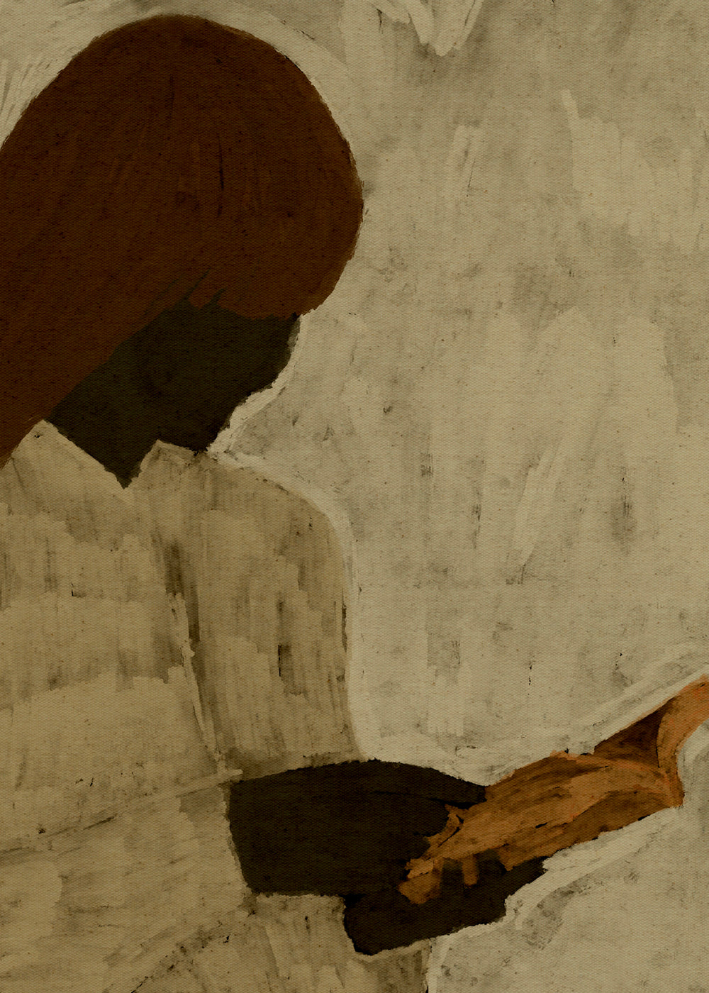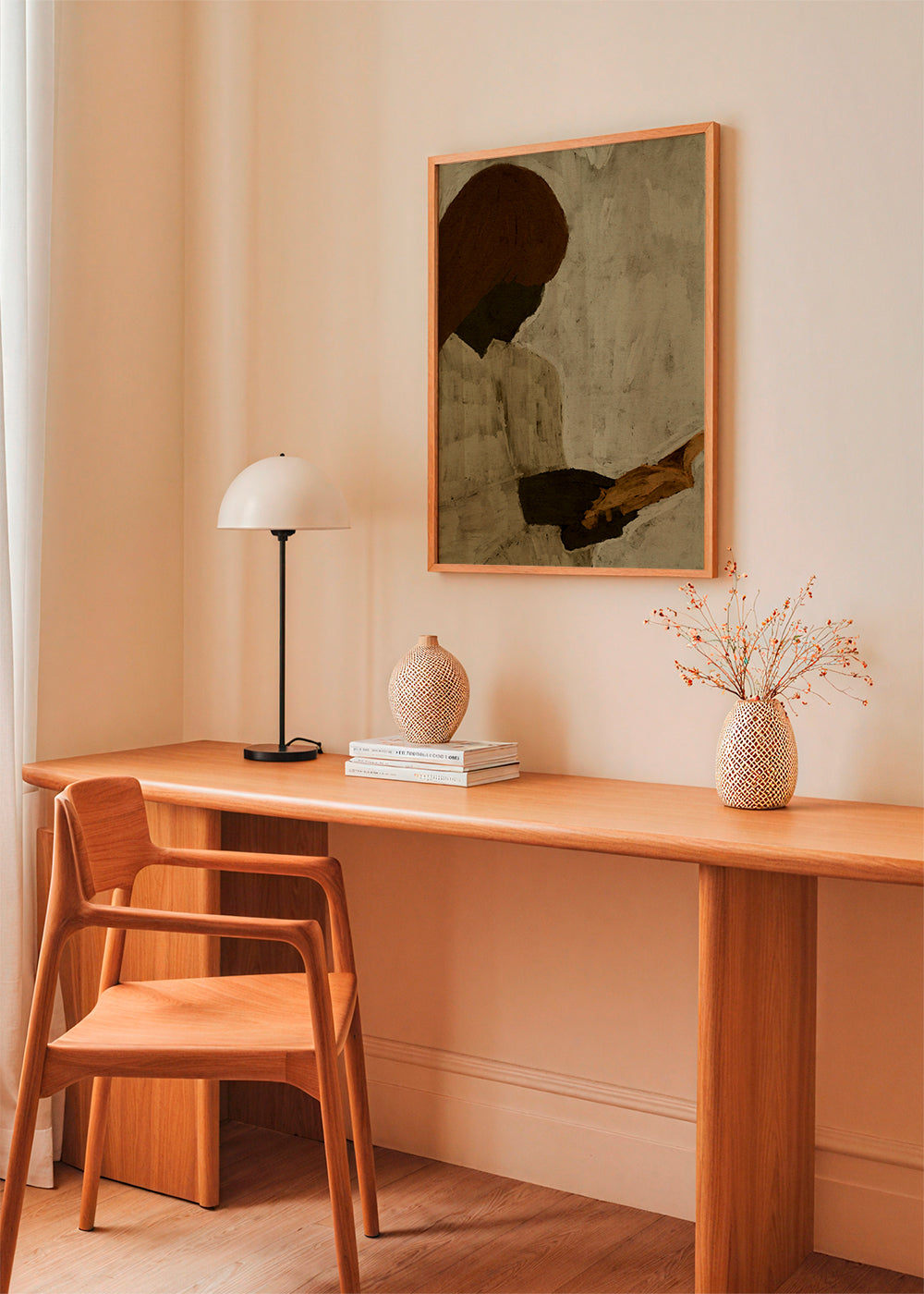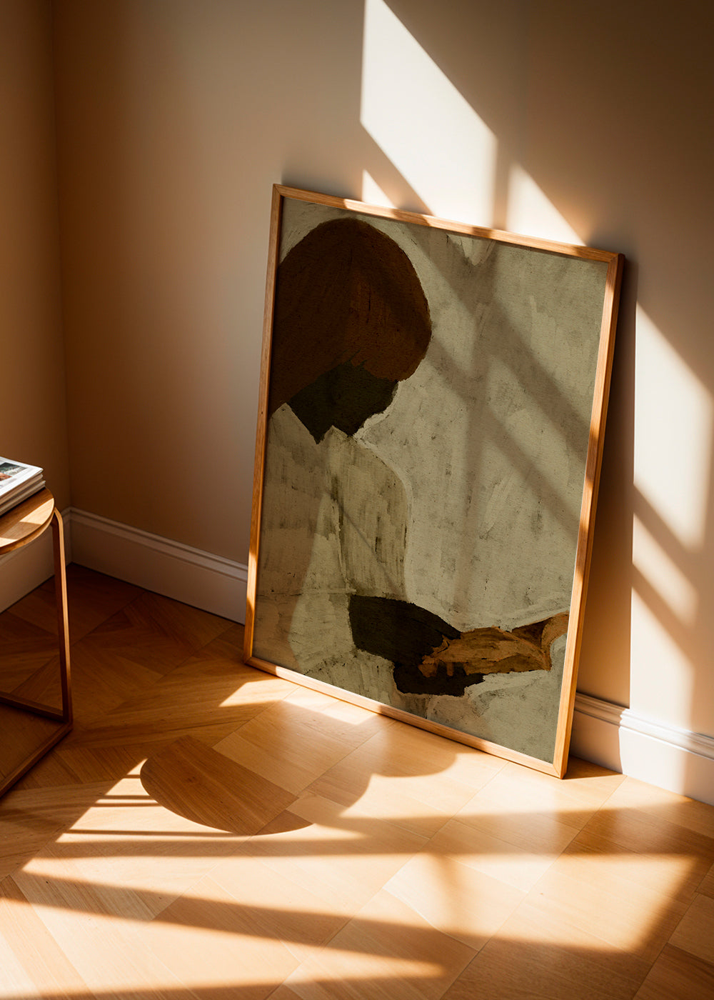 A stunning art print from our selection of wall decor for women, influenced by the artistry of Shatha Dafai, showcasing hues of gray and perfect for a vertical display. The artwork is clear and easily understandable, allowing for easy combinations with other Illustrations to create an imaginative setup. An unadorned wall serves as a blank canvas eager for decoration.