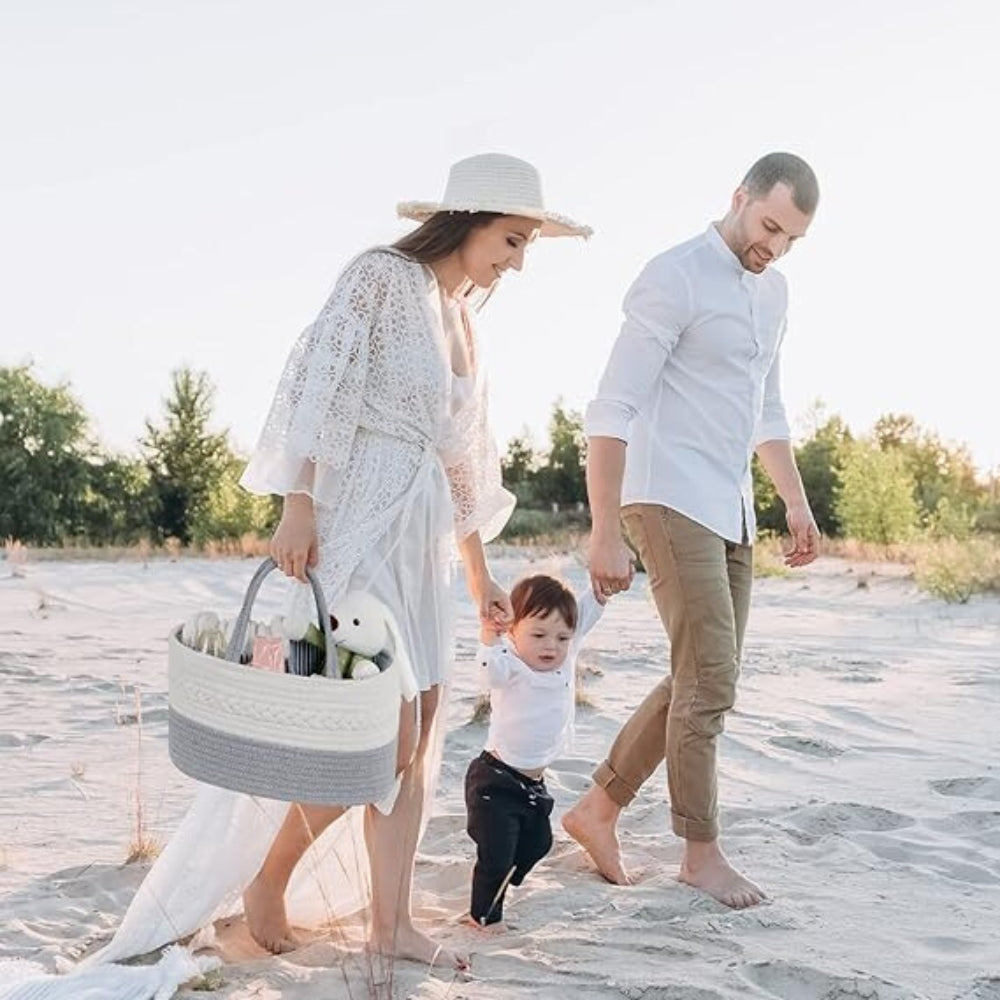 Enhance your parenting experience with the Braided Grey Baby Essentials Organizer. This elegantly designed woven caddy blends style with practicality, keeping diapers, bottles, and toys neatly organized. Its subtle grey hues and robust structure make it a perfect fit for any nursery, and its compact size offers convenience for every mother on the move.