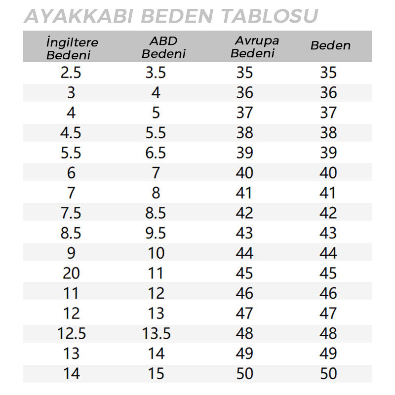 Size: 36, 37, 38, 39, 40, 41, 42, 43, 44, 45, 46, 47, 48