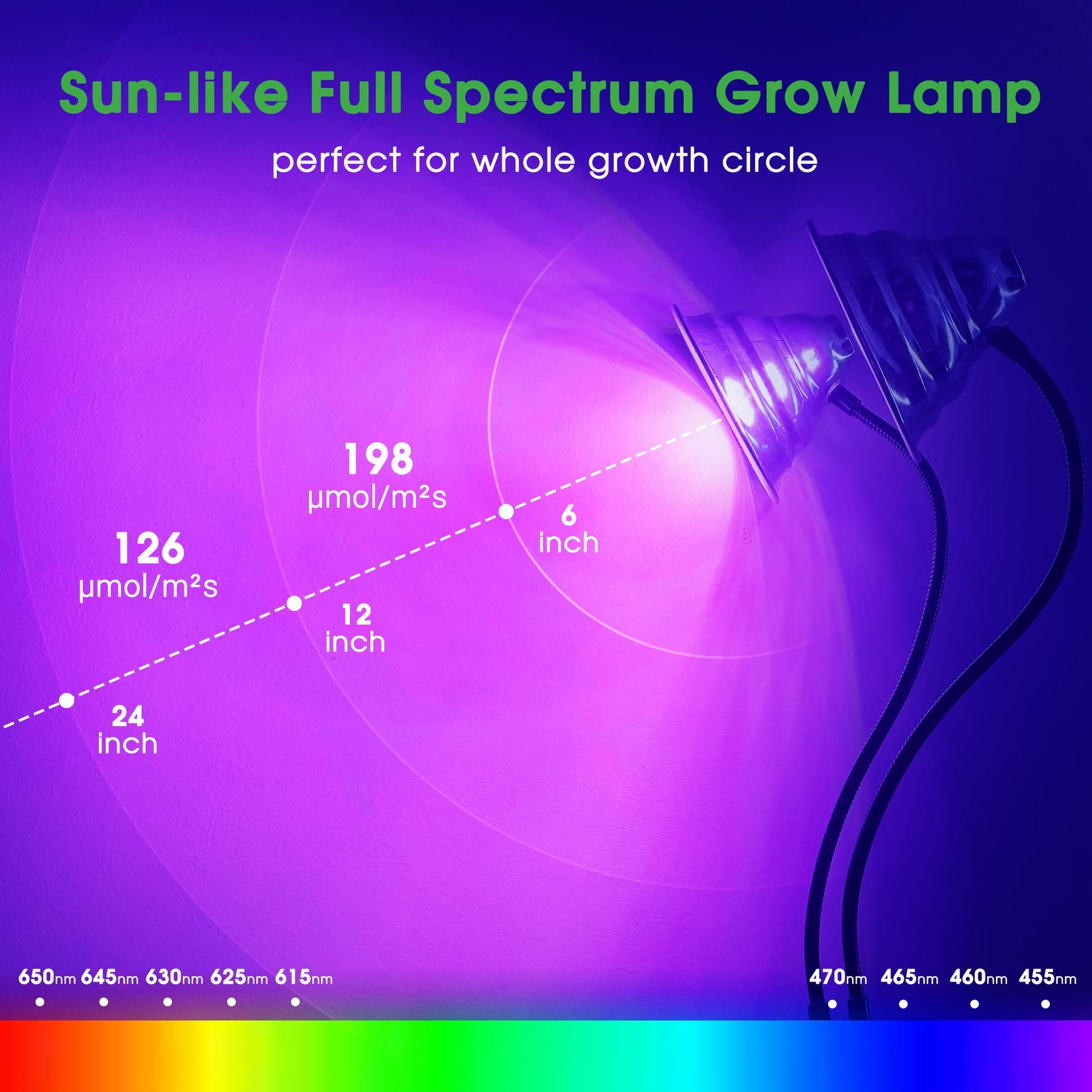 • STURDY GOOSENECK & SECURE CLAMP: The 360-degree adjustable gooseneck and anti-slip clamp allow you to position the lamp precisely where it’s needed, providing the best lighting angle for your plants.