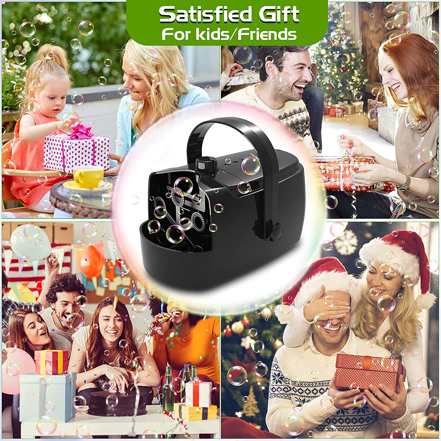 For Family OutingsThe armrests are designed v with ergonomic principles for easy grip. It's easy to transport. The body is sturdy, fall-resistant, and long-lasting. A perfect option for outdoor activities. Enjoy a delightful weekend with your children. | For Wedding CelebrationsFully automatic bubble machine, producing dense bubbles that create a romantic wedding setting. The bubbles are more colorful, adding precious memories to your wedding. | For Birthday CelebrationsThe baskets and arc shapes of the toddler toys are smooth, fabricated from durable materials, with safe handles free from any sharp edges, allowing bubbles for kids that ignite their imagination and provide a magical birthday experience. |