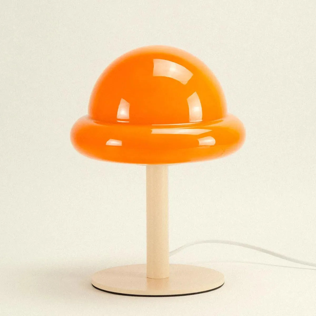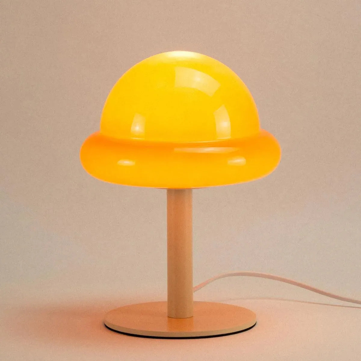 Transform your living area with a delightful pop of color. Offered in two charming hues - Mint and Citrus - this lamp introduces a whimsical flair to any environment. The robust painted metal base ensures stability, while the curved glass shade lends a touch of elegance to your home. With a height of 28 cm and a width of 20 cm, the 'Bubblegum Lamp' perfectly balances compact design with striking presence. It's an excellent choice for infusing your space with vibrant color and a cozy glow.