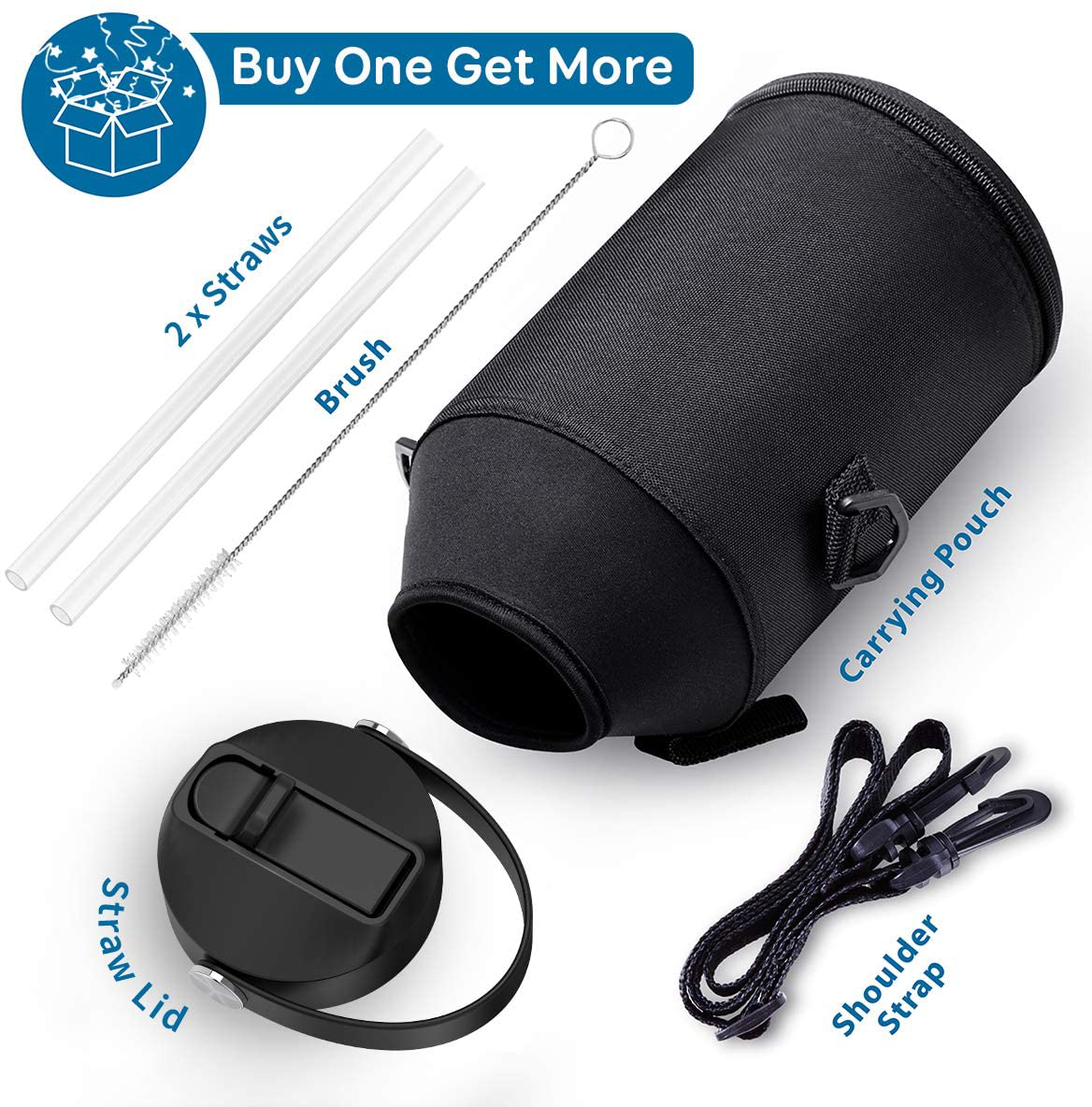 Extended Temperature RetentionIf you need a water bottle that keeps your drink refreshingly cold or pleasantly hot until the last sip, look no further than the Buzio Vacuum Insulated Wide Mouth; it is why we enjoy such loyalty from our clientele—it performs exceptionally well. | Always AffordableBeyond the standard bottle top, it additionally includes 1 x Straw Lid, 1x Flexible Lid, 2 x Straws, 1 x Straw Brush, and 1 x Carrying Case—everything you need is neatly bundled in one offering. | Generous Volume for Daily HydrationThe bottom diameter of the water bottle measures 4.92 inches; please check your cup holder size before making a purchase if you plan to store it there. We assure you’ll stay cold/hot and adequately hydrated throughout the day, regardless of where your travels take you. Plus, it is just as stylish as it is functional. |