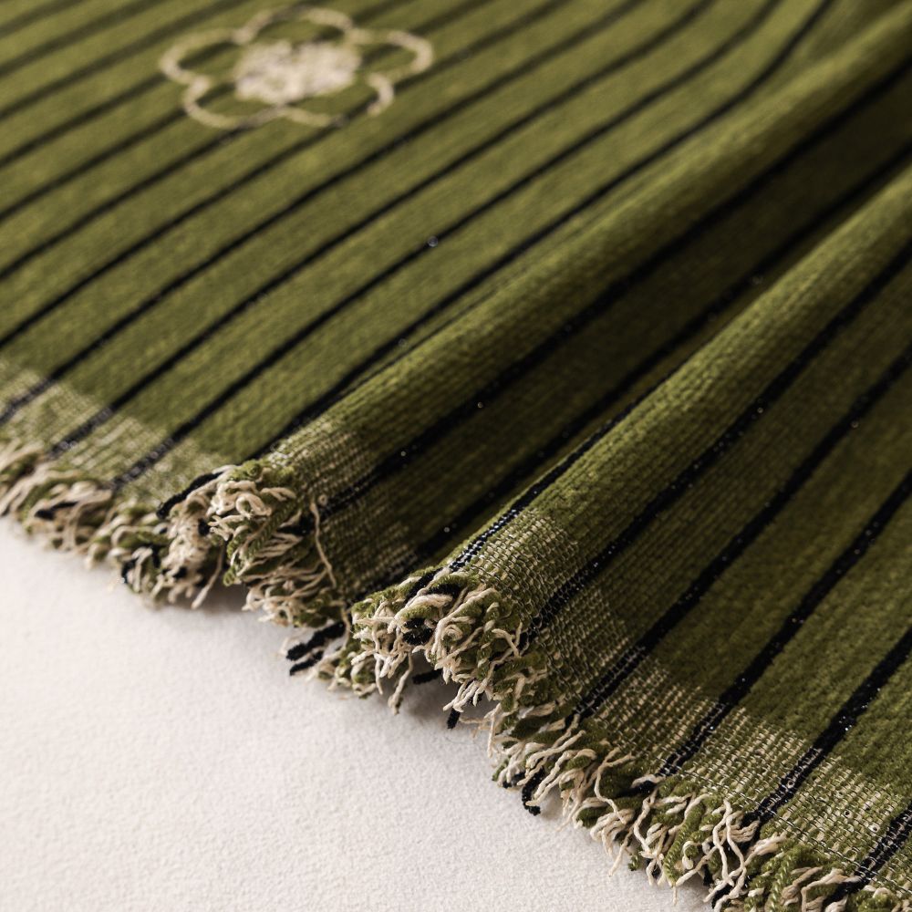 Add an elegant flair to your home with the Camellia Bloom Sofa Cover. Made from breathable chenille, this versatile item showcases a beautifully embroidered camellia design along with a striped jacquard pattern. It can be utilized as a sofa cover, a furniture shield, or a cozy light blanket.