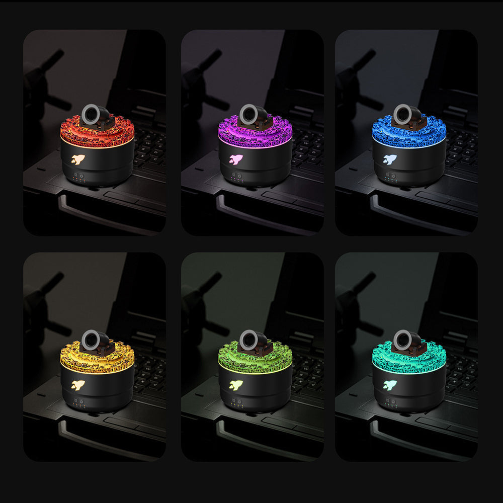 The Aroma Cannon Humidifier with Night Light beautifully merges striking aesthetics with contemporary utility. Its sleek, cylindrical form features a genuine, radiant lava ring that illuminates in various colors during use, adding a sense of warmth and charm to any space.