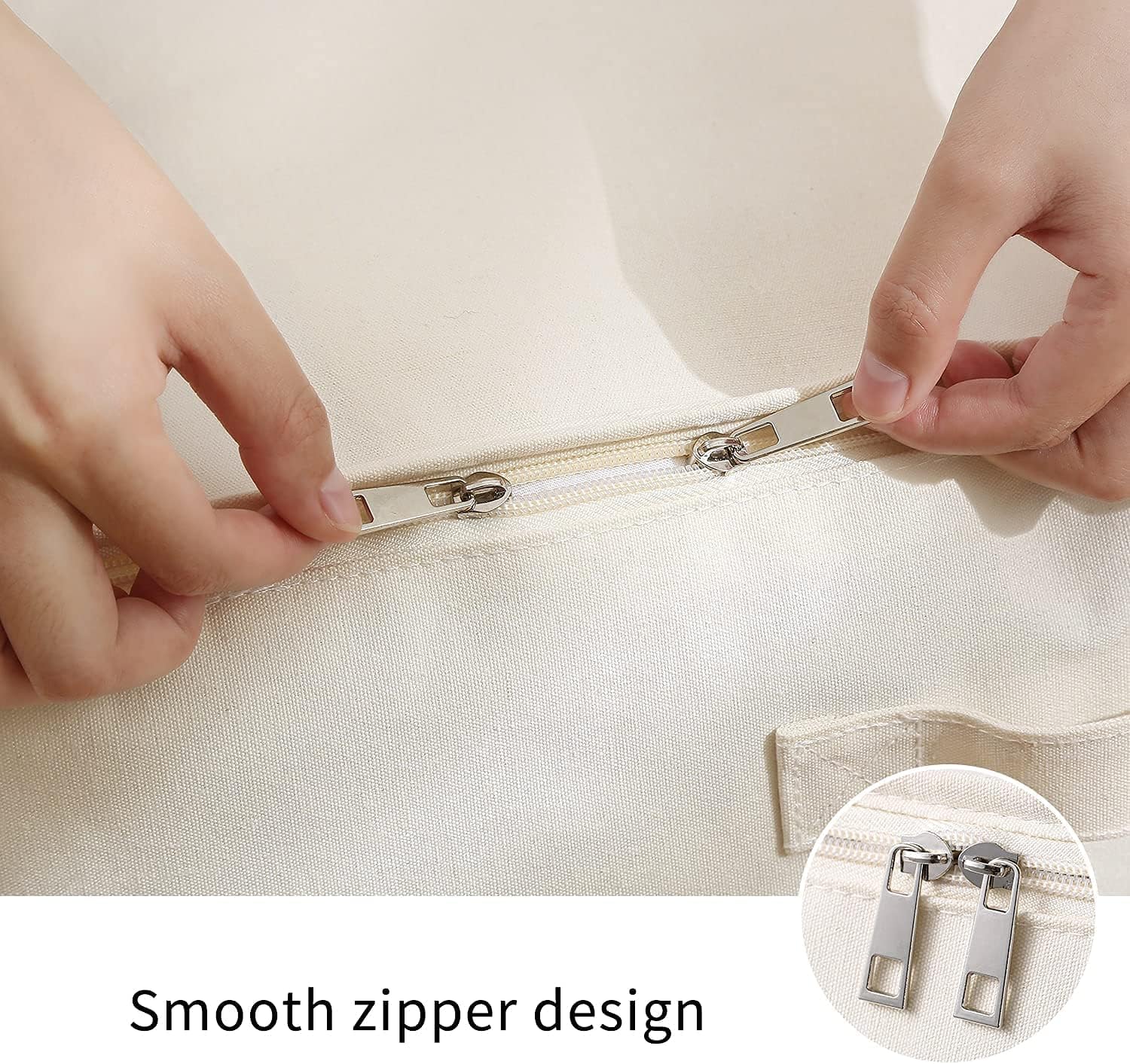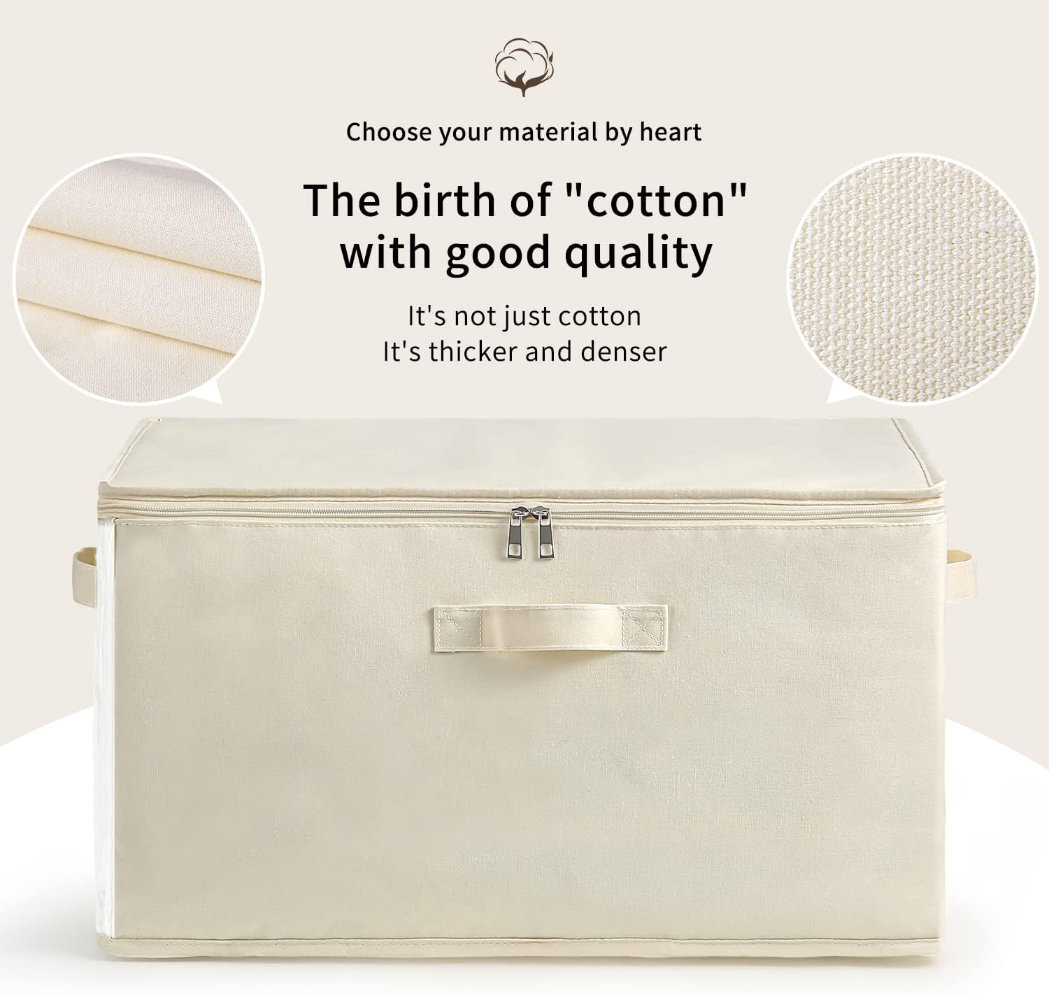 Crafted from thick, high-density cotton canvas with a water-resistant PE lining, this storage organiser is perfect for quilts, comforters, jackets and sweaters. A clear side window makes it easy to see what’s inside without opening. With a structured three-handle design and dual zipper opening, it’s easy to fill, stack, and move around. The foldable design also lets you tuck it away when not in use.