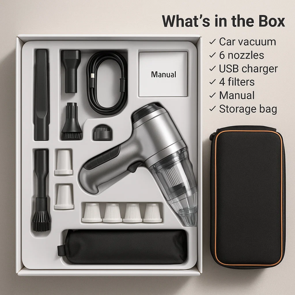 6 Versatile Attachments – Comes with crevice tools, soft brushes, and extension nozzles to ensure every area is accessible.