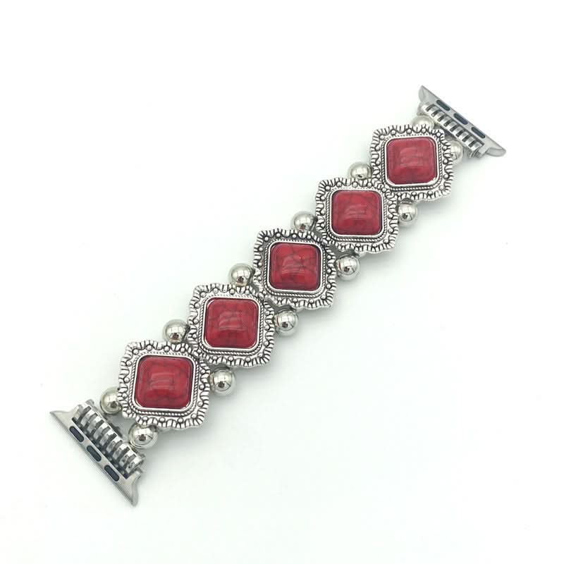 Enhance your smartwatch with the Casavine strap. This creatively crafted smartwatch strap in a Bohemian style showcases vibrant turquoise tones, combined with exquisite metallic accents and artisanal charm.