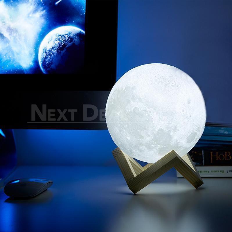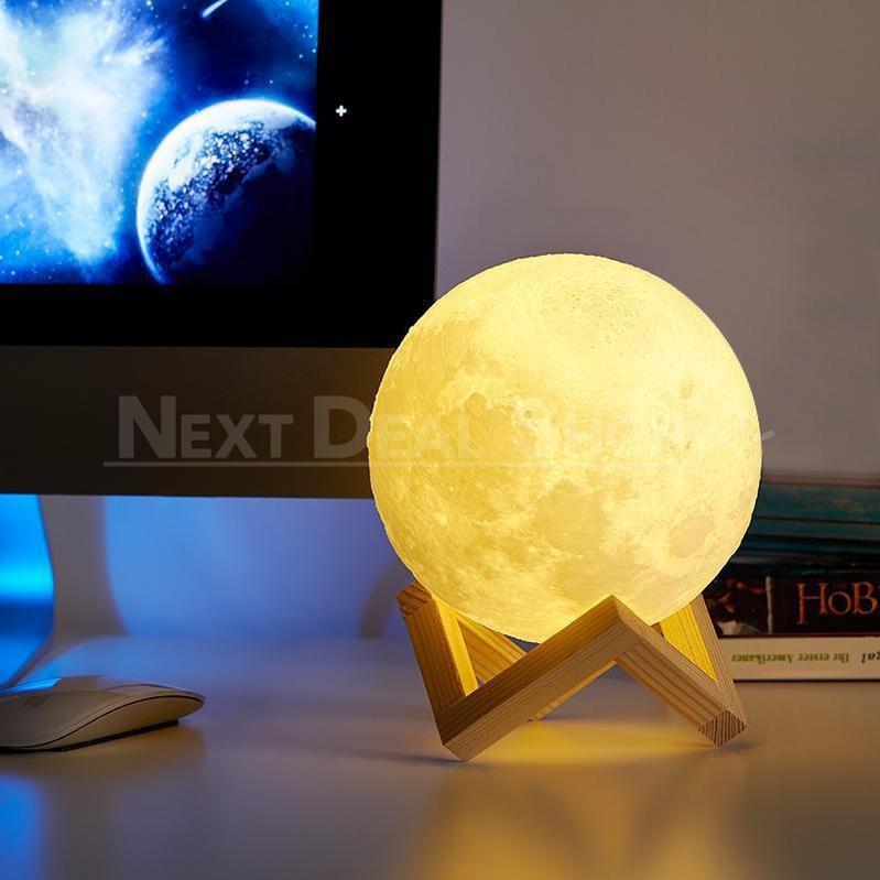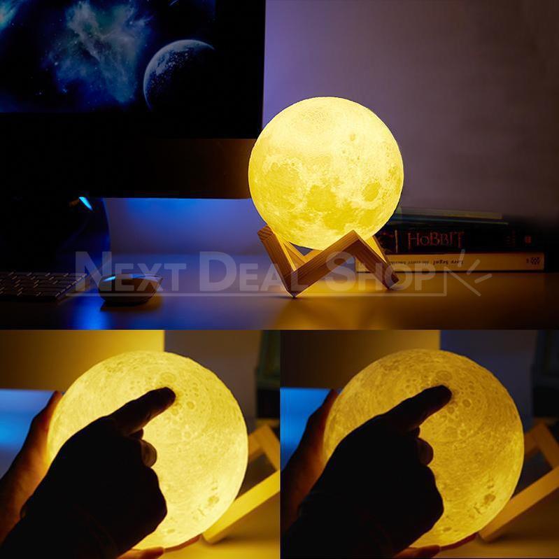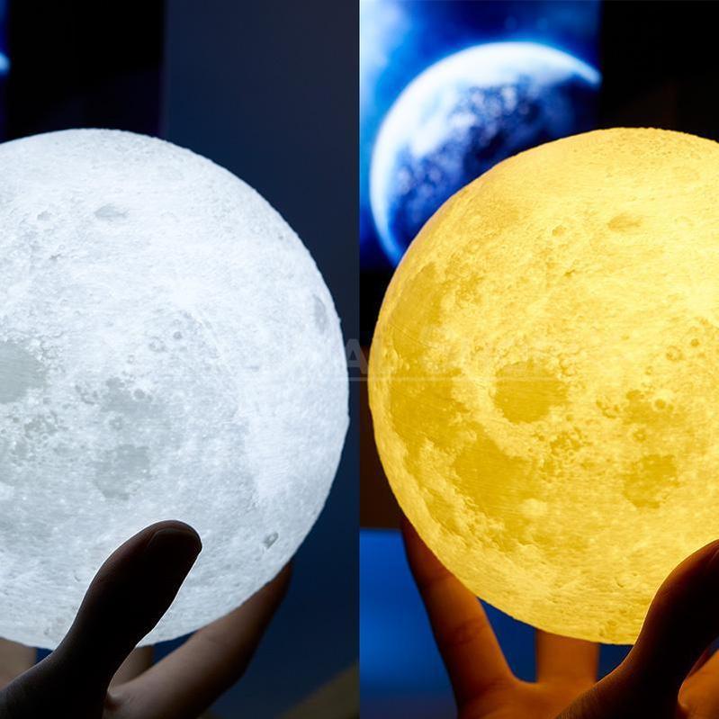 Transform your bedroom into a serene oasis with the enchanting glow of this moon lamp, allowing you to experience the magic of a full moon each night. It offers two soothing light options: a soft yellow and a calming white. Made with state-of-the-art 3D printing technology, this moon provides an incredibly lifelike appearance.