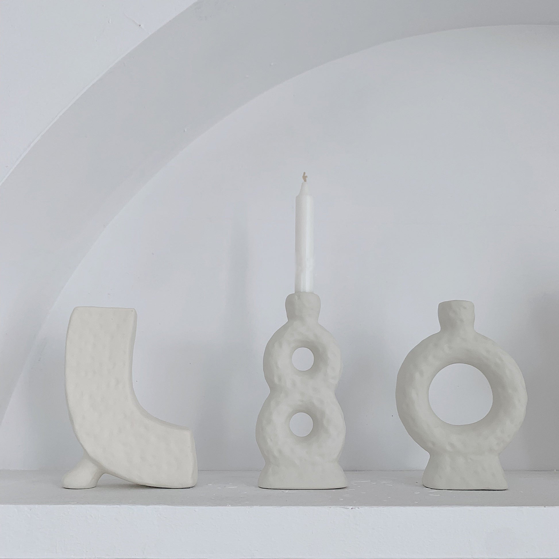 This round ceramic candle holder serves as a stunning addition to any room. With its unique circular form and minimalist aesthetic, this piece brings a touch of elegance and modern style into your space. It is perfect for creating a warm and inviting atmosphere in a variety of areas, such as the living room, dining room, or bedroom.