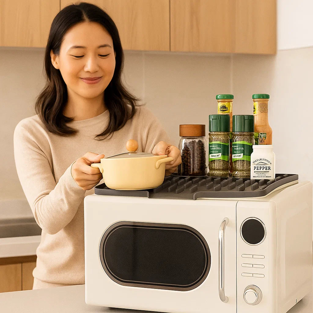 This silicone drip mat is not only functional but also convenient to store. Its flexible form allows for quick rolling or easy placement in a drawer when not in use, ensuring it's always within reach.