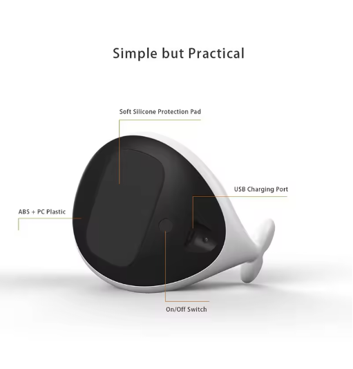 Add a touch of whimsy to your living space with the color changing whale night light. This adorable whale combines aesthetic appeal with functionality, providing a gentle illumination that cultivates a calming environment – perfect for children's rooms, bedrooms, or serene evenings.