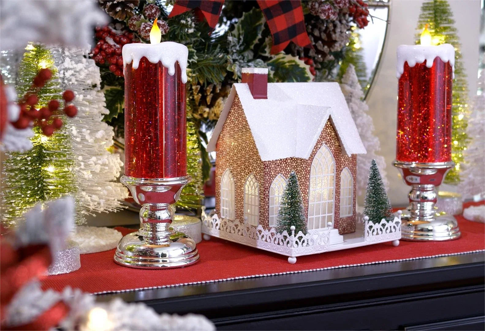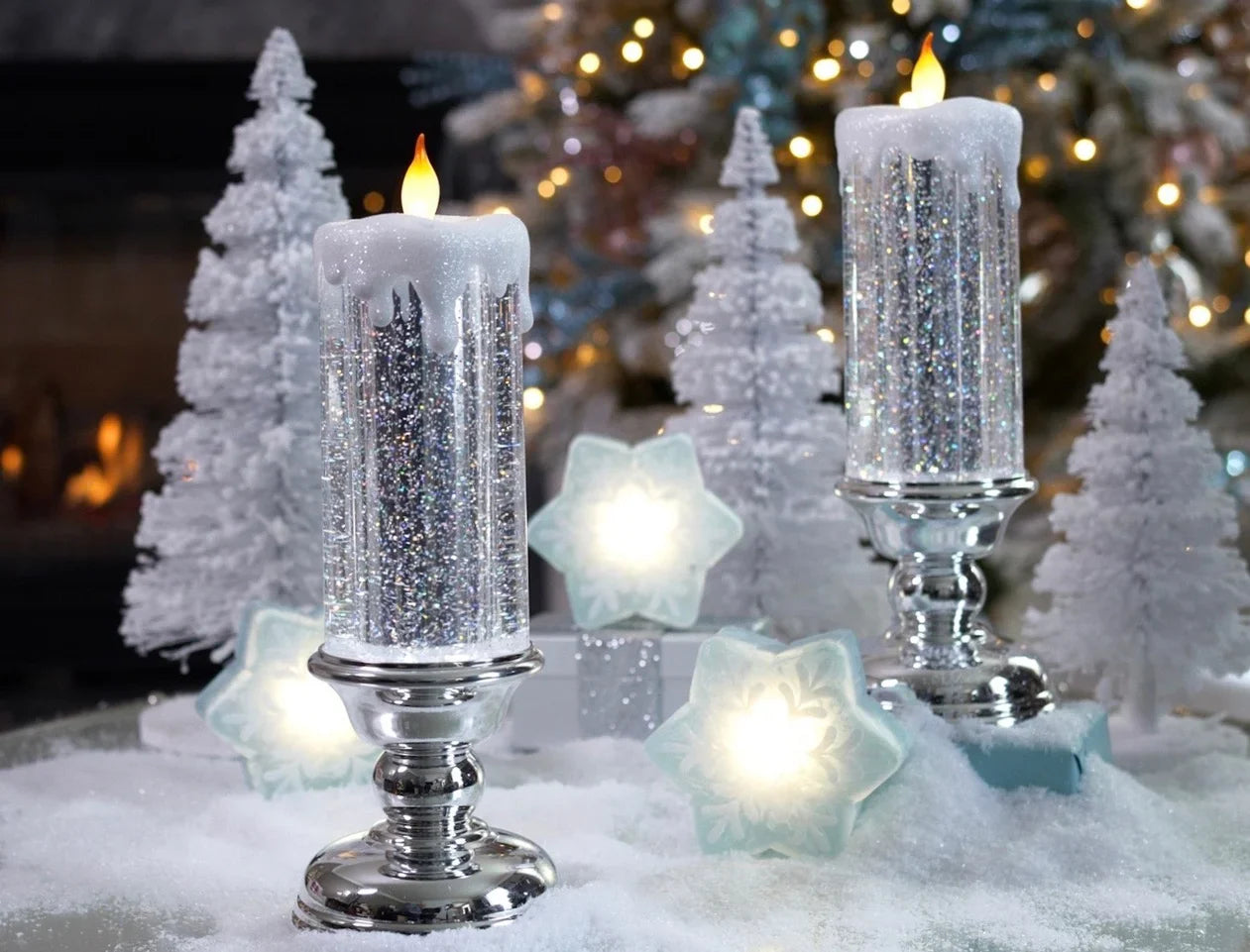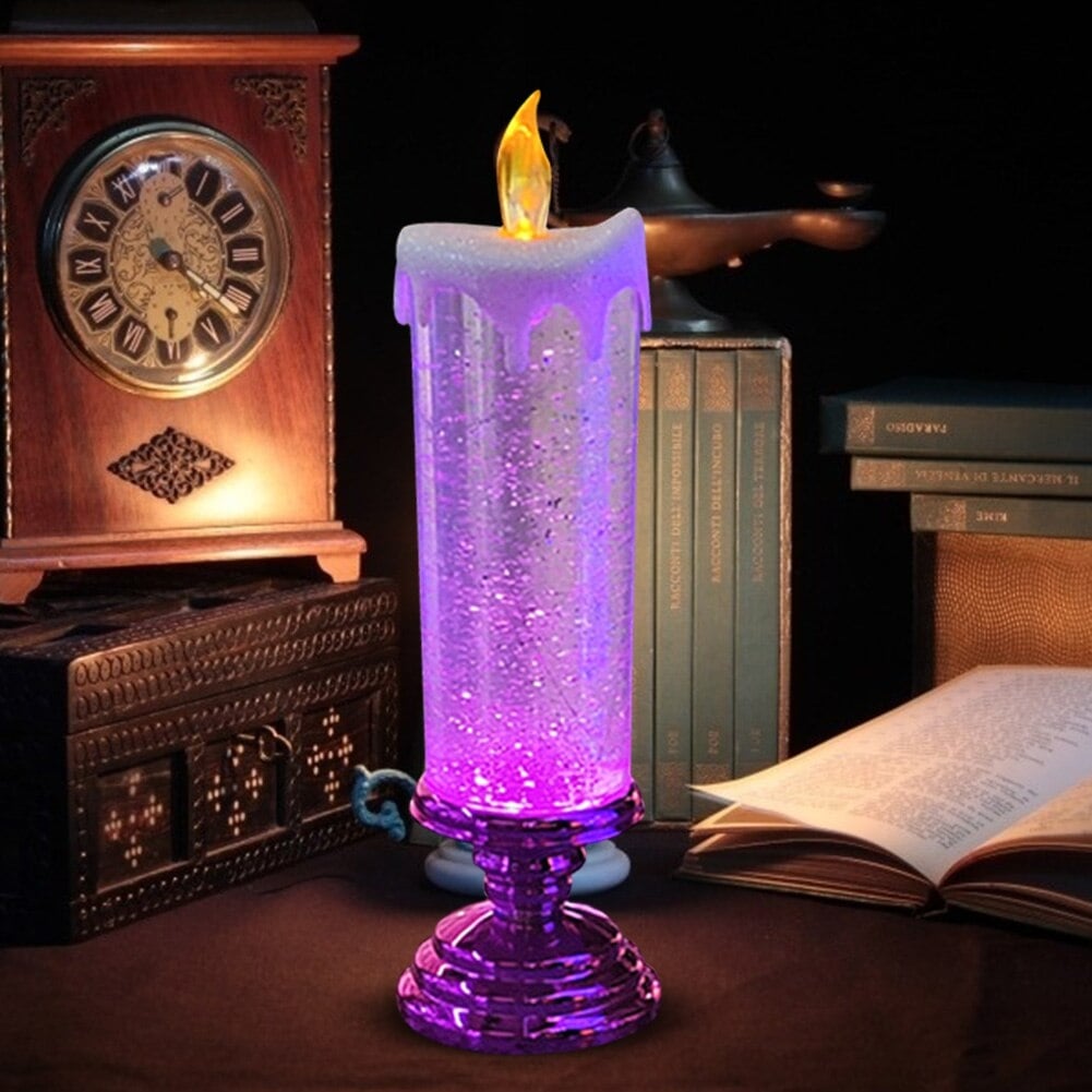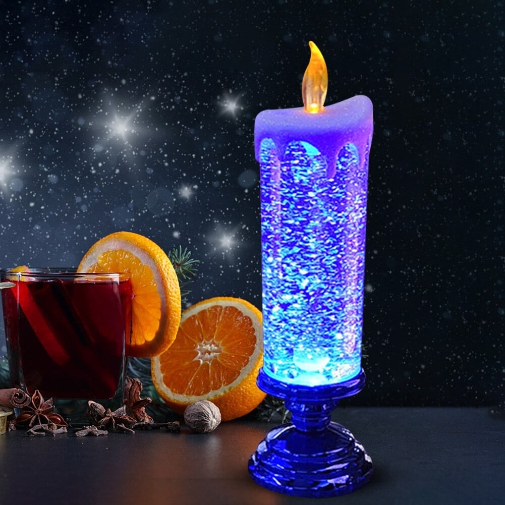 As the water circulates through the tube, a color-changing LED illuminates it to provide a stunning festive touch. The colors gently transition between green, yellow, red, and pink while the simulated flame glows in orange.